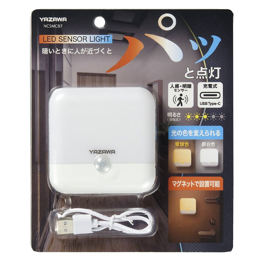 四角型面発光センサーライト NCSMC87 USB充電(Type-C)背面マグネット付き [白色 /充電式]