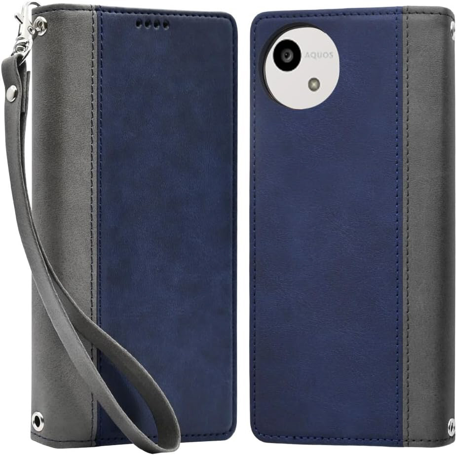 AQUOS wish5 SH-52F 手帳型 ケース カバー 本革調 レザーケース ネイビー×グレー SHAQW5BING