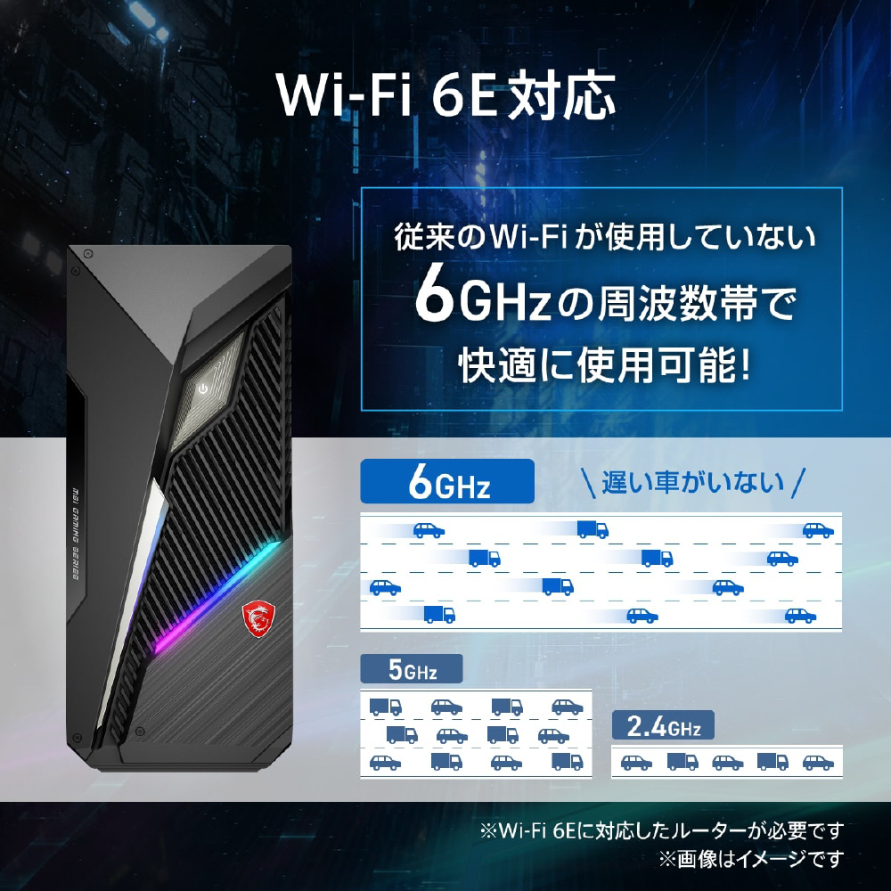新たに6GHz帯での通信に対応し、電波の干渉が少なくスムーズで遅延が少ない安定したデータ通信ができます。