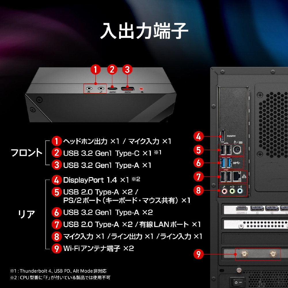 DisplayPort 1.4 ×1 ※CPU型番に「F」が付いている製品では使用不可