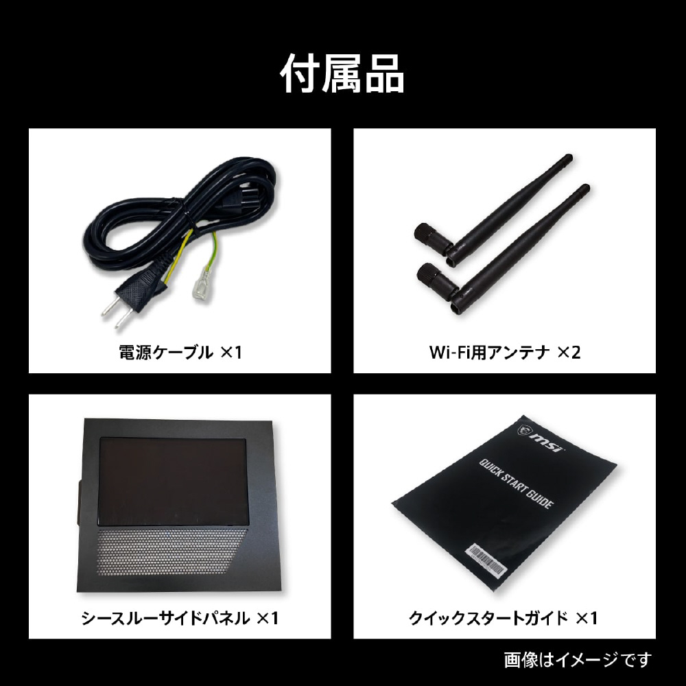 付属品 電源ケーブル ×1、Wi-Fi用アンテナ ×2、シースルーサイドパネル ×1、クイックスタートガイド ×1