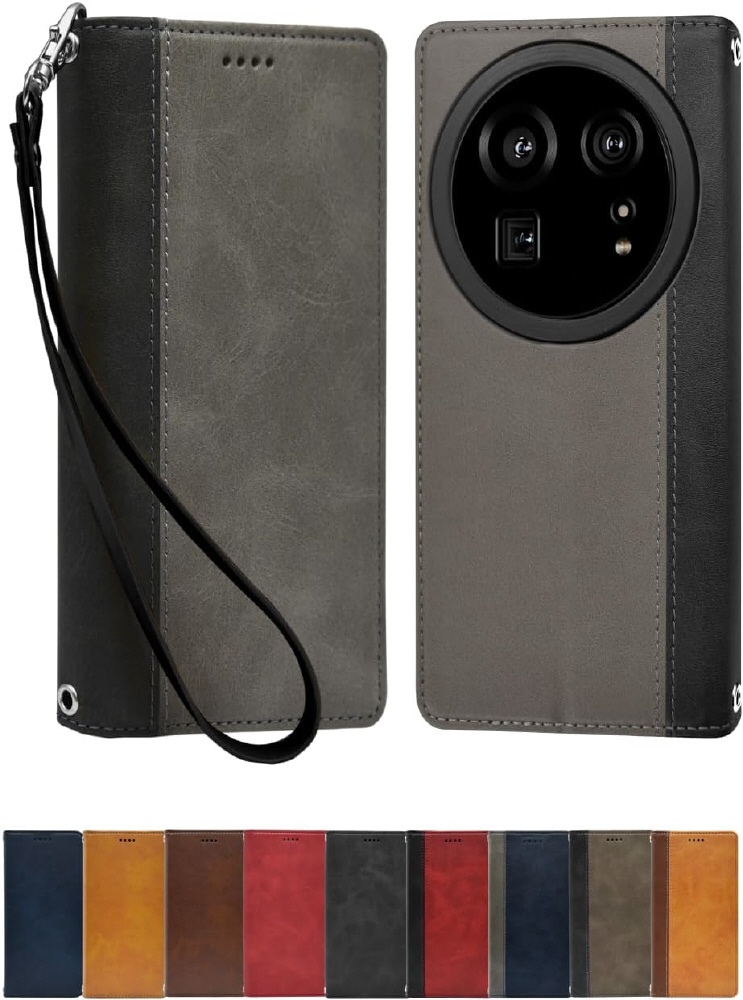 AQUOS R9 Pro SH-54E 手帳型 ケース カバー 本革調 レザーケース グレー×ブラック SHAQR9PBIGB