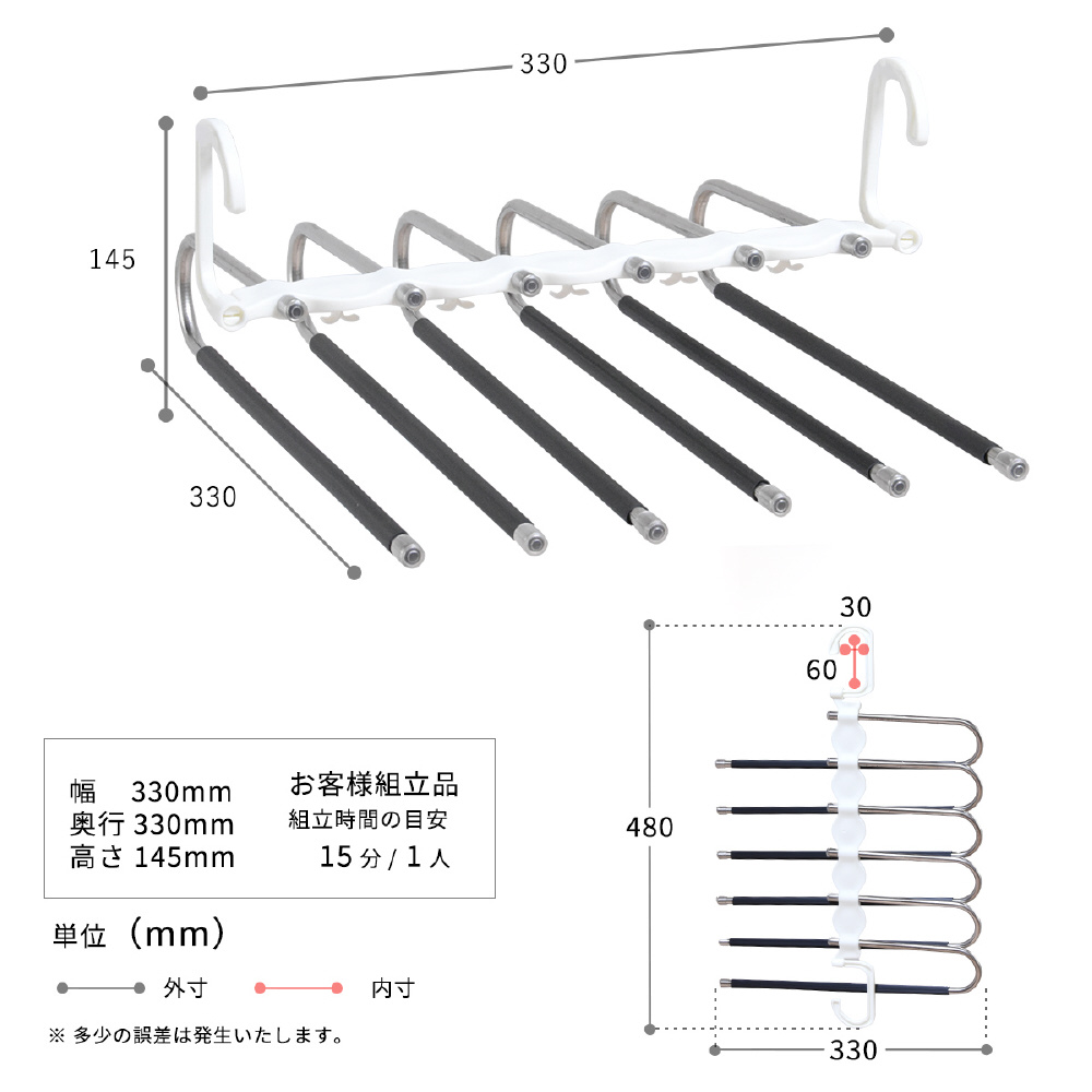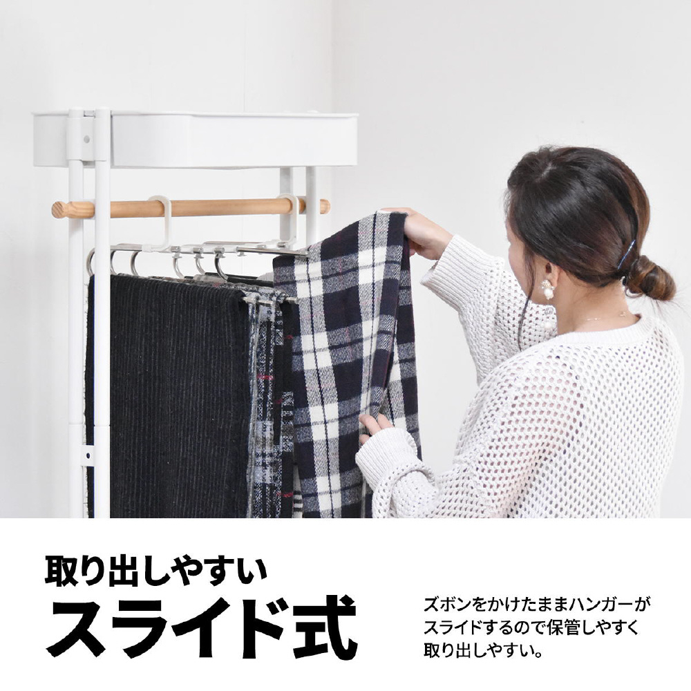 ■■6本のズボンをまとめて吊り下げ省スペース。