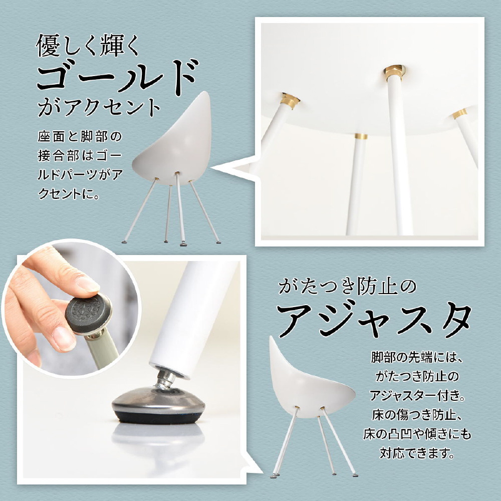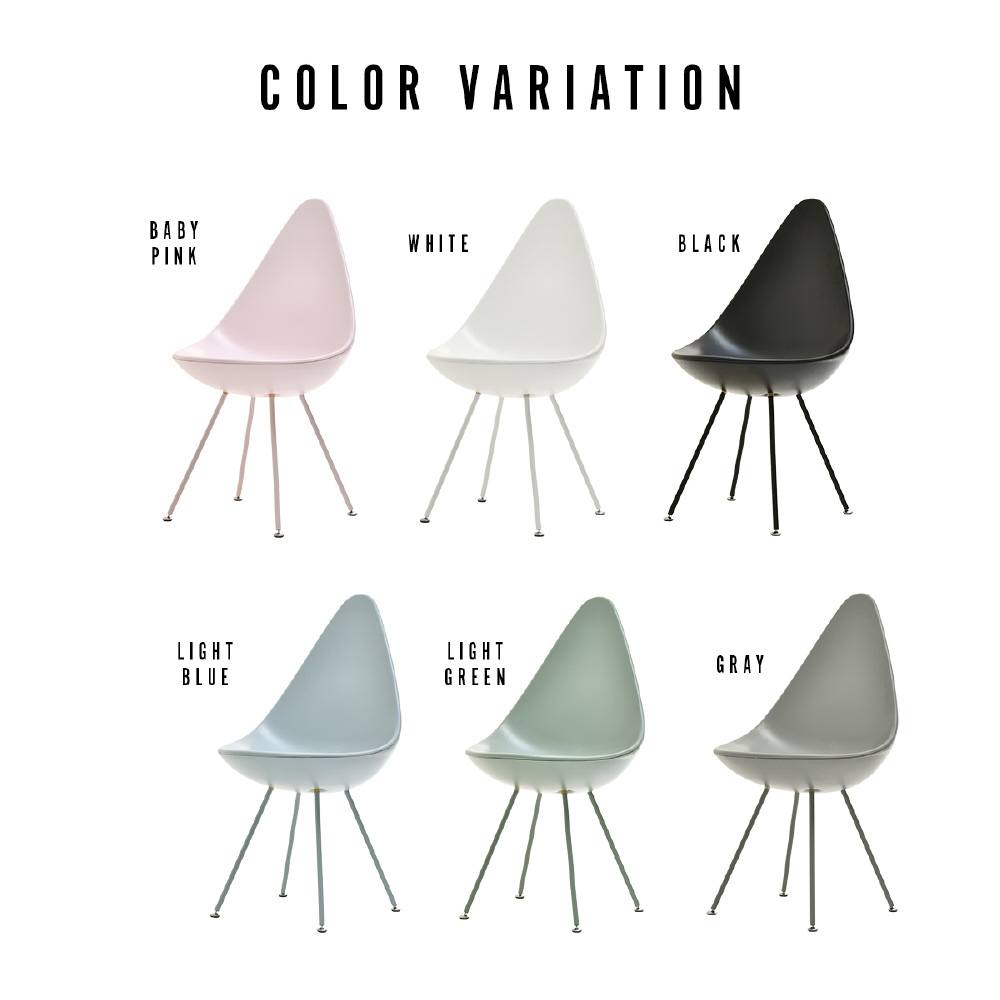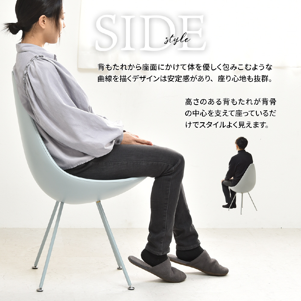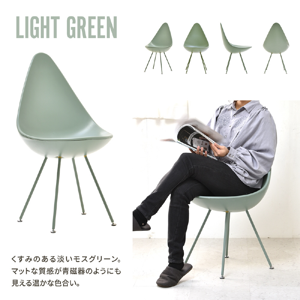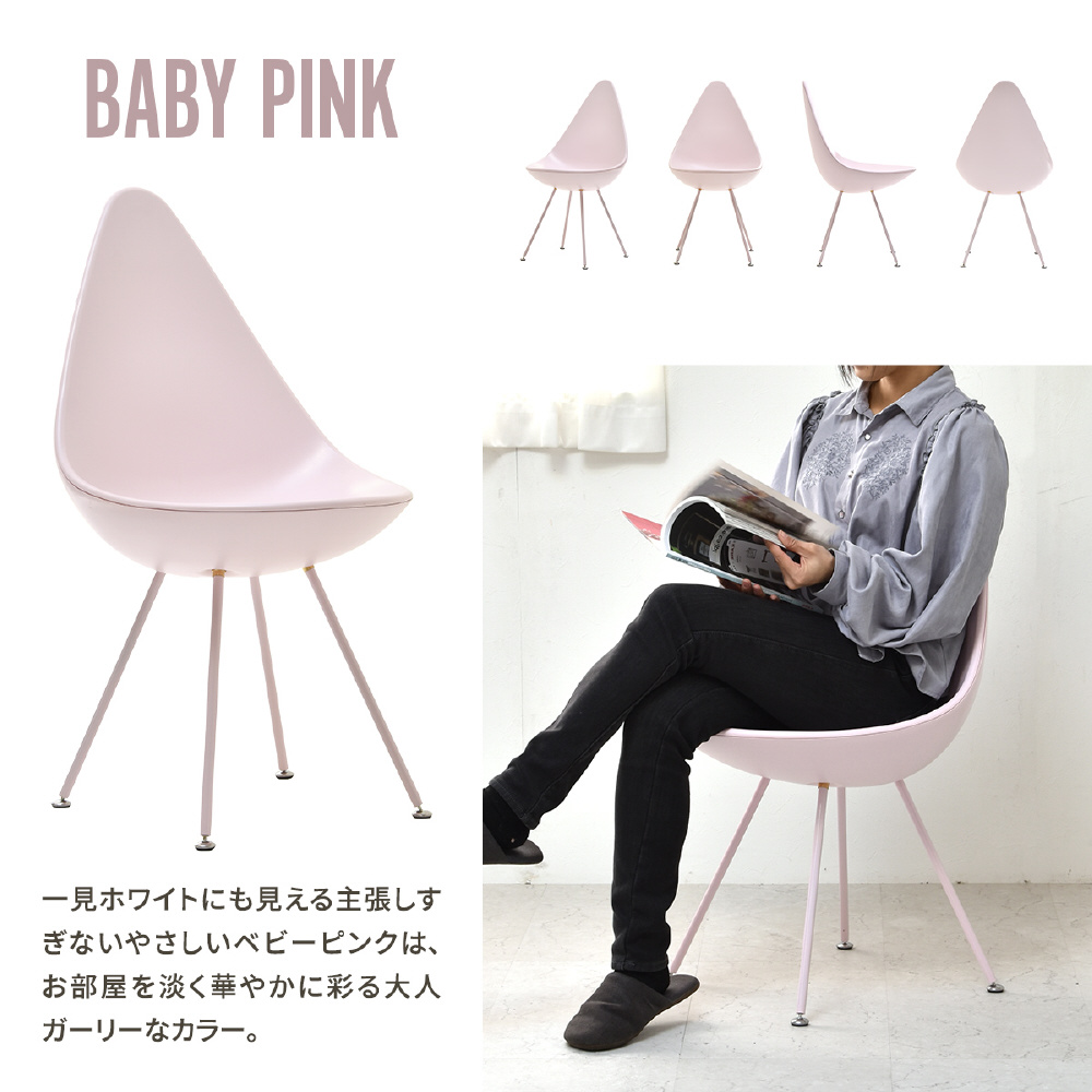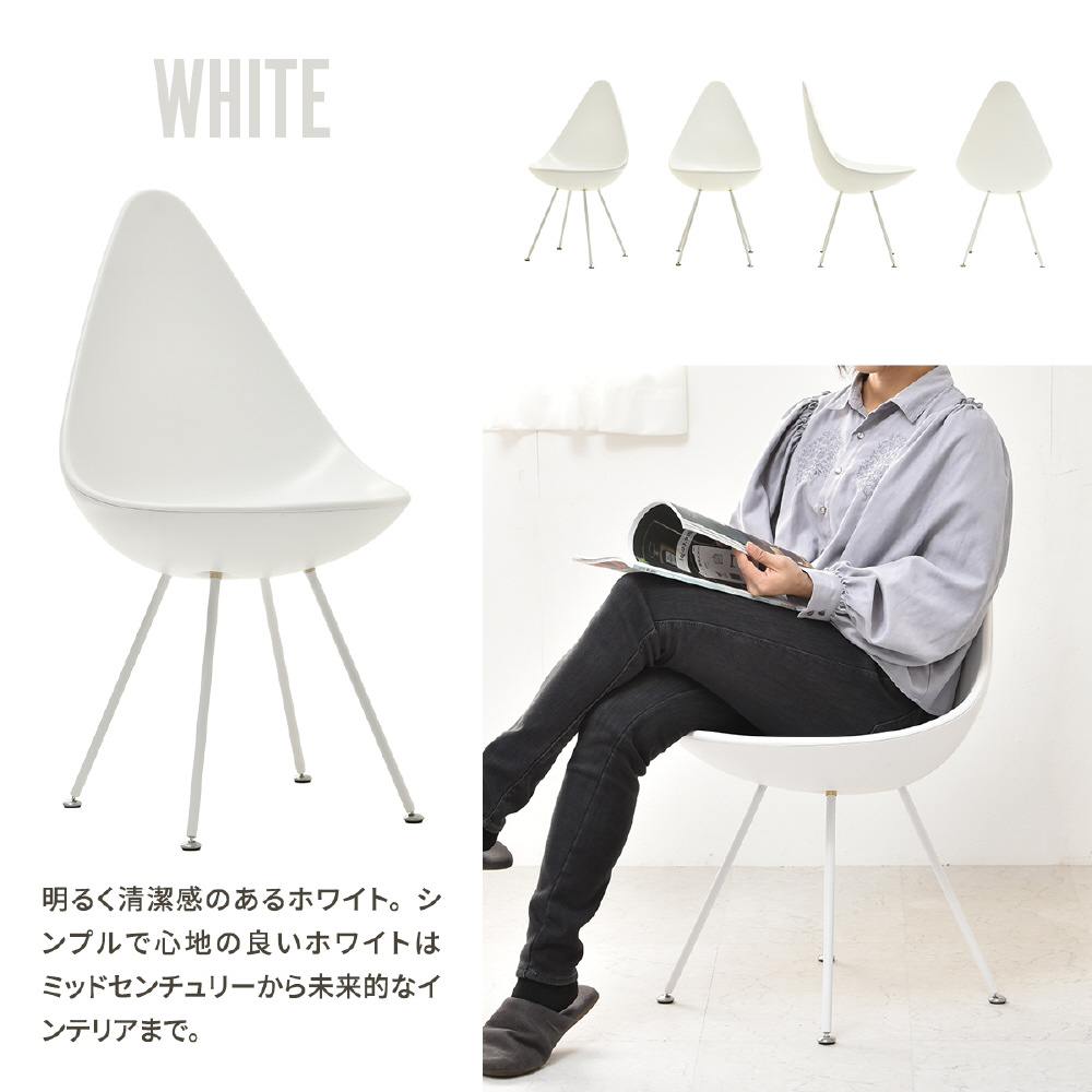 樹脂系素材を使用した、丸みを帯びた雫のようなフォルムでまるでオブジェのような独特の存在感を醸し出しているチェア。ハの字の脚部で安定性も良くスタイリッシュなデザイン。ぽってりとした愛らしいフォルムに癒されます。体にフィットするように設計された滑らかなドロップ型の曲線は、ダイニングやワークスペース、お部屋のワンポイントなど様々なシーンで活躍します。