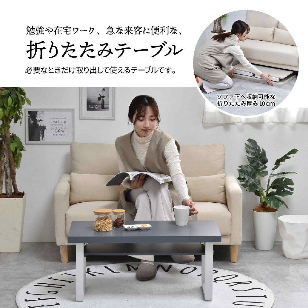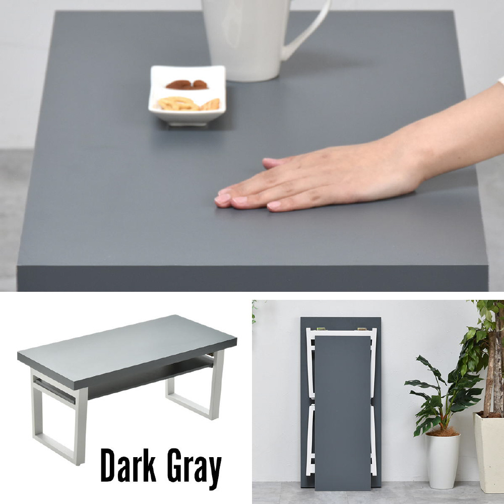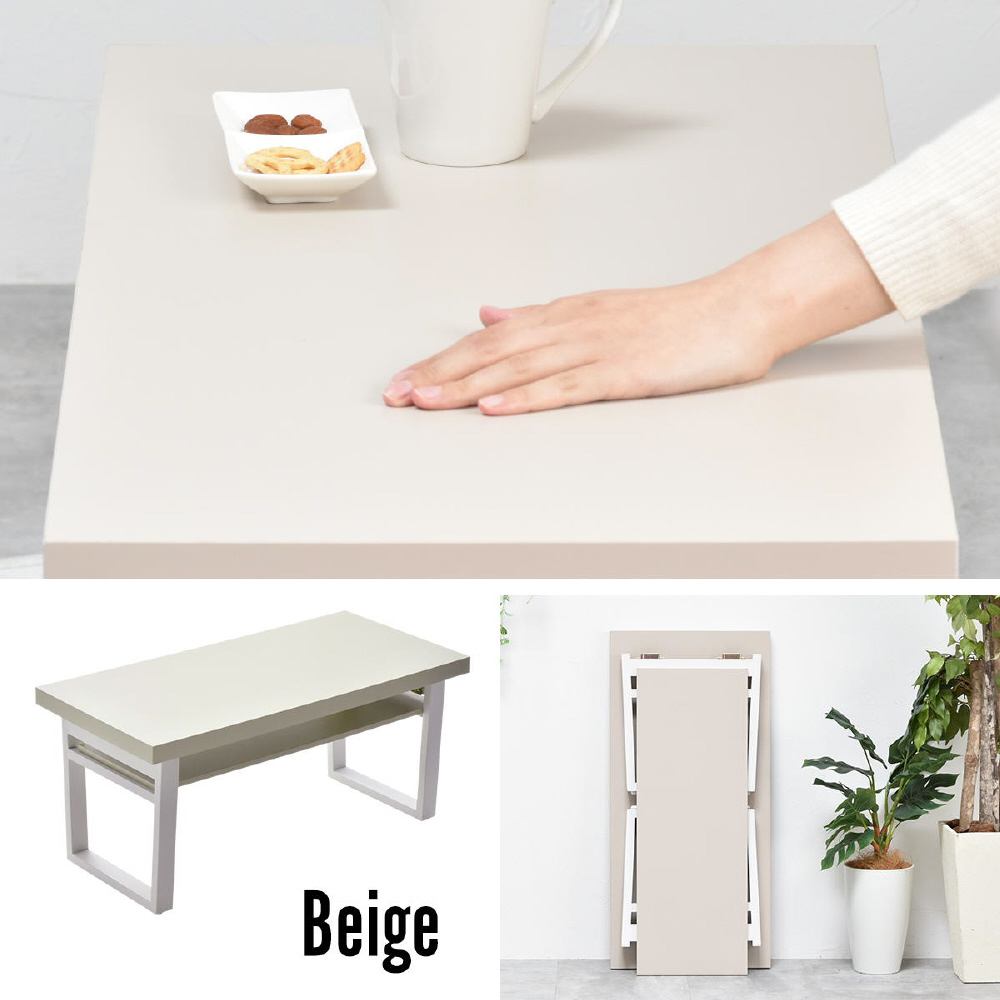 シンプルで機能的な折りたたみテーブルです。天板の板厚が35mmもあり重厚な為、高級感があります。折りたたんだ時は約10cmの厚みにあるので、ソファーの下やちょっとした隙間に収納して置くことも可能なので、来客用のサブテーブルとしても重宝します。