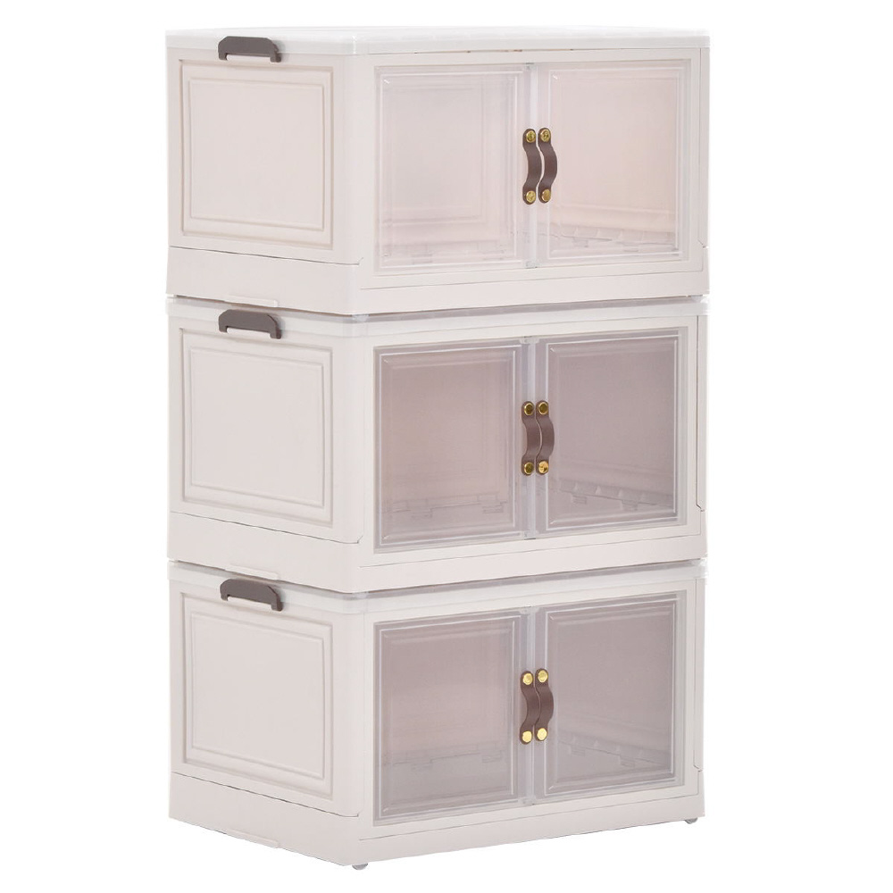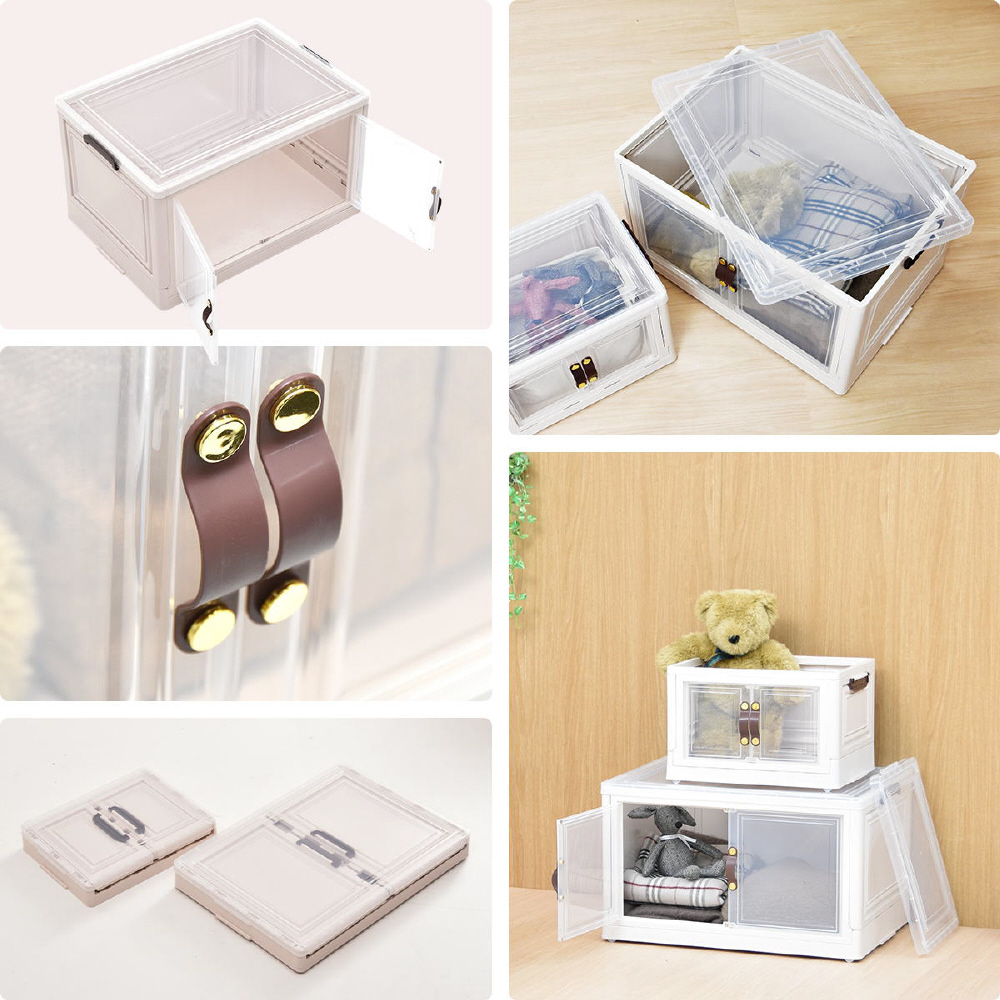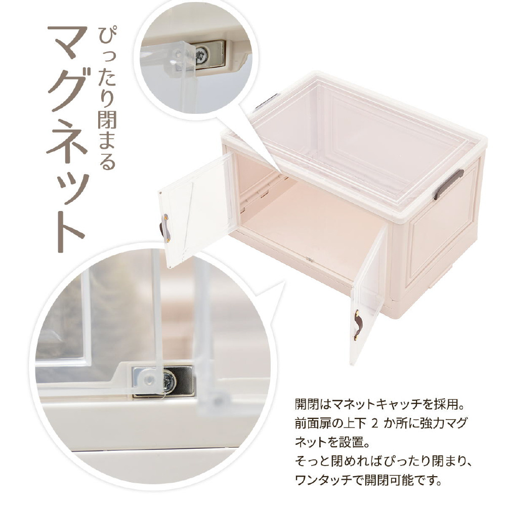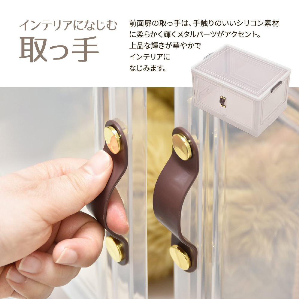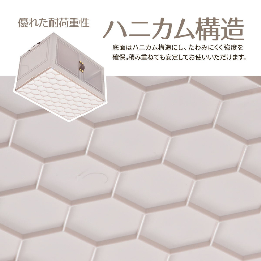 半透明で中身が見える可愛い収納ボックス。底部分にはキャスターがついており、移動が楽なのでお掃除する時にも便利です。また積み重ねができる仕様になっているので、お部屋のスペースやご利用になりたい容量などに合わせて積み重ねてお使いいただける点や、天板と前扉が半透明なので中身がすぐわかるという点もおすすめです。