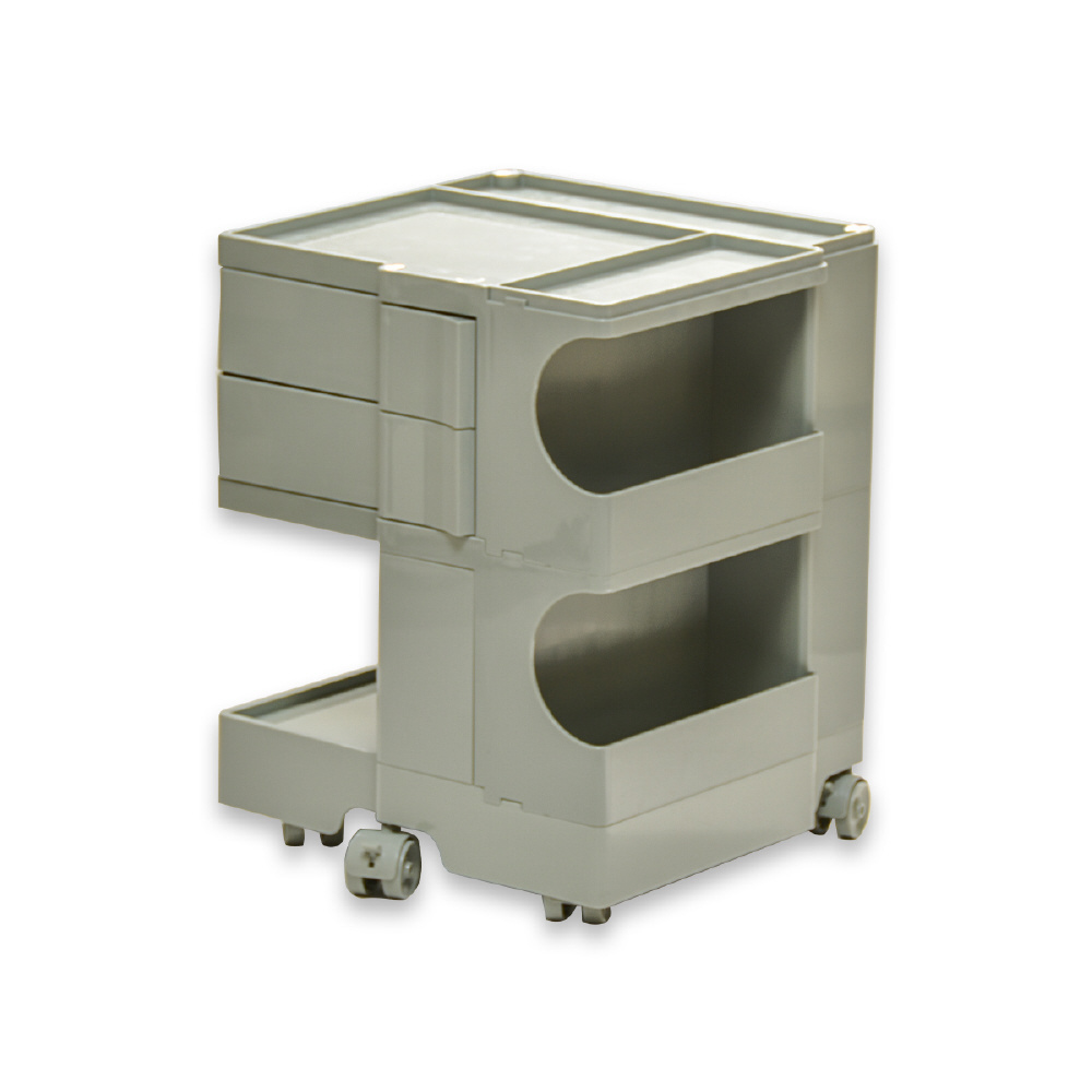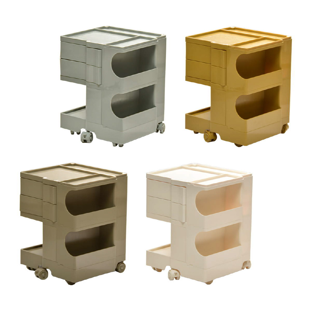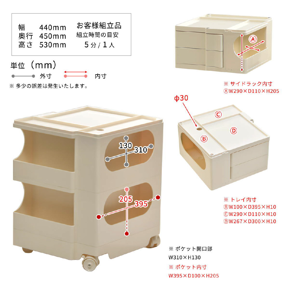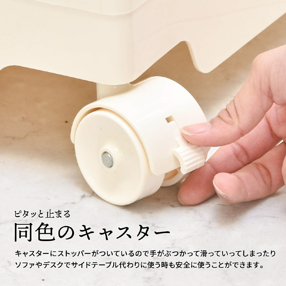 キャスター付きの本体を回転させることで側面4面すべてを効率的に使える、デザイン性と機能性に優れた収納家具です。180度回転するスライドトレイや、ボトル類の保管に適した奥行きのあるポケットなど、機能性に富んだ収納スペースが随所に工夫されています。ABS樹脂製なので衝撃にも強く、汚れたときの拭き取りも簡単にお手入れができます。