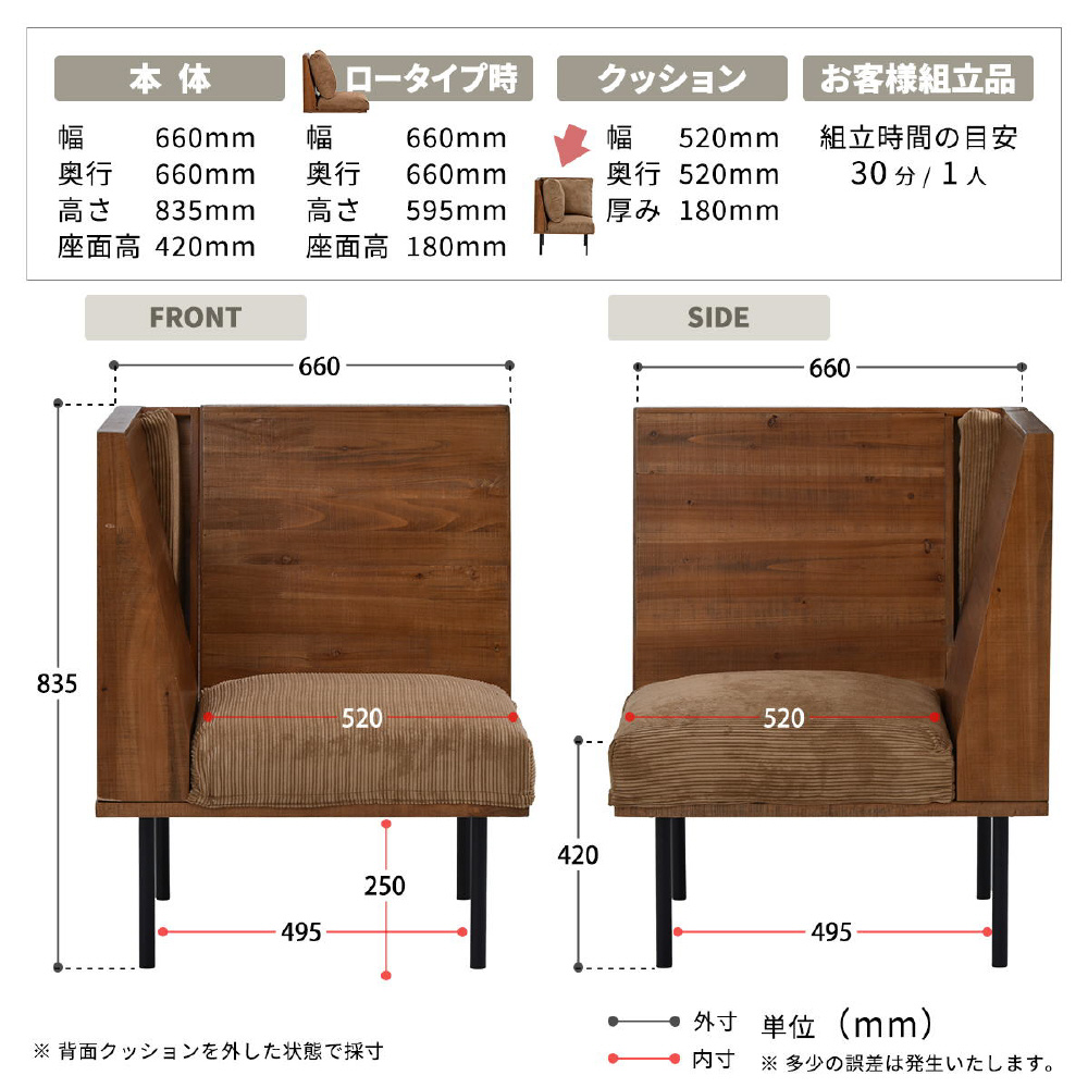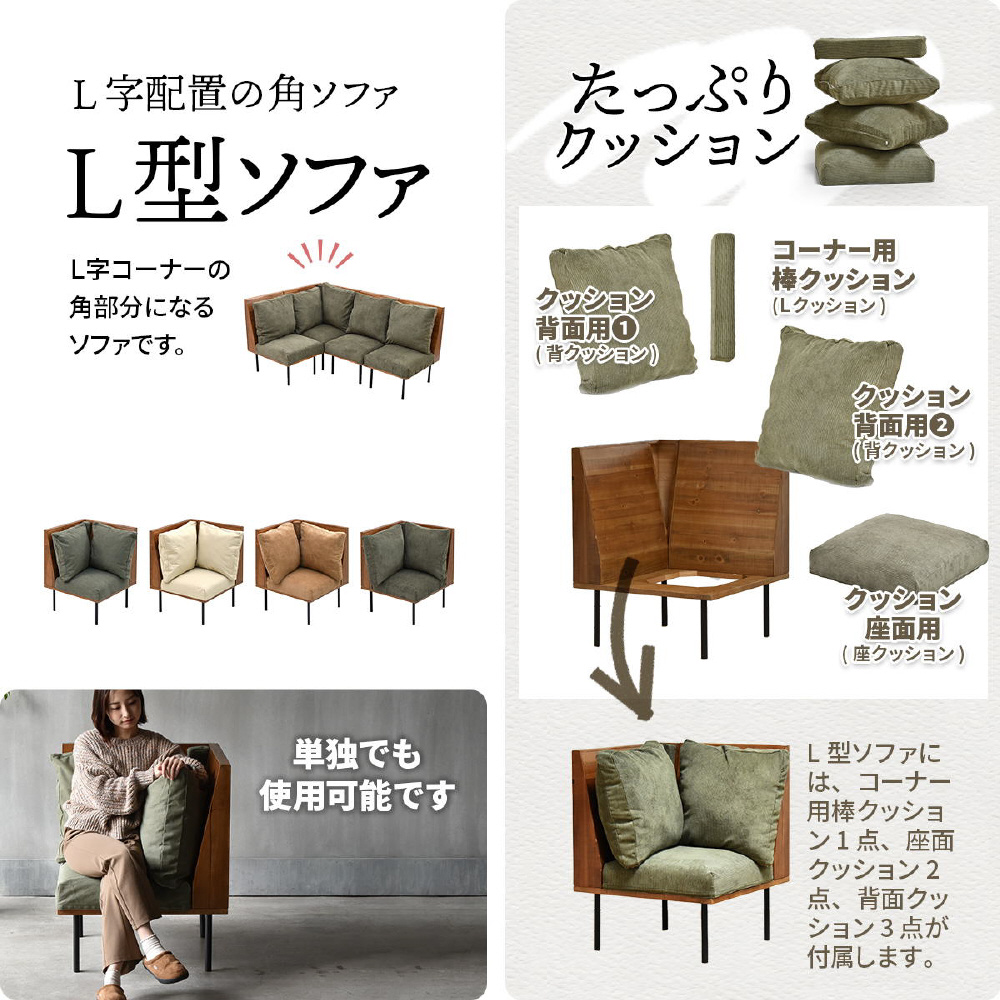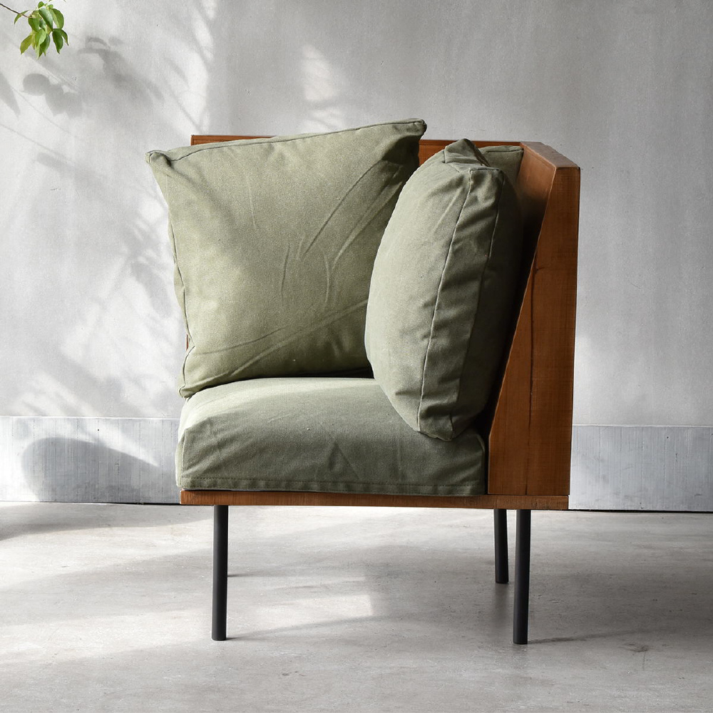 古材の様なエイジング加工を施した天然木をふんだんに使いブルックリンスタイルに仕上げたインフィニティーシリーズのL型ソファー。ソファーは1台ずつ分離していますが、連結金具を使用してつながる事ができるので、お部屋のサイズ感やレイアウトに合わせた組み合わせる事で、お好みの形のソファーにカスタマイズする事ができます。ロータイプのソファーとしてもご使用いただける仕様になっています。