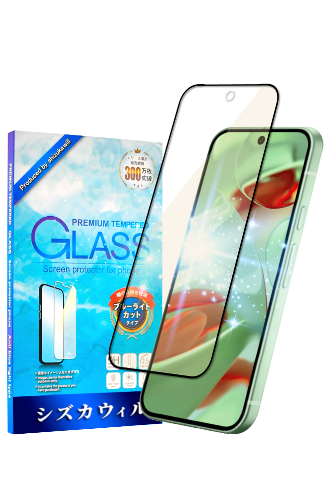 Google Pixel9 / Pixel9 Pro ブルーライトカット 全面保護 ガラスフィルム 保護フィルム 黒縁