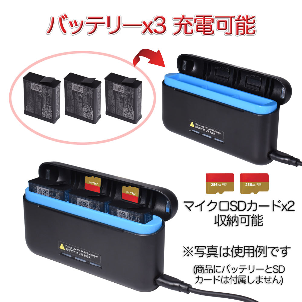 3つ同時充電可能なHERO13用バッテリーチャージャーです。