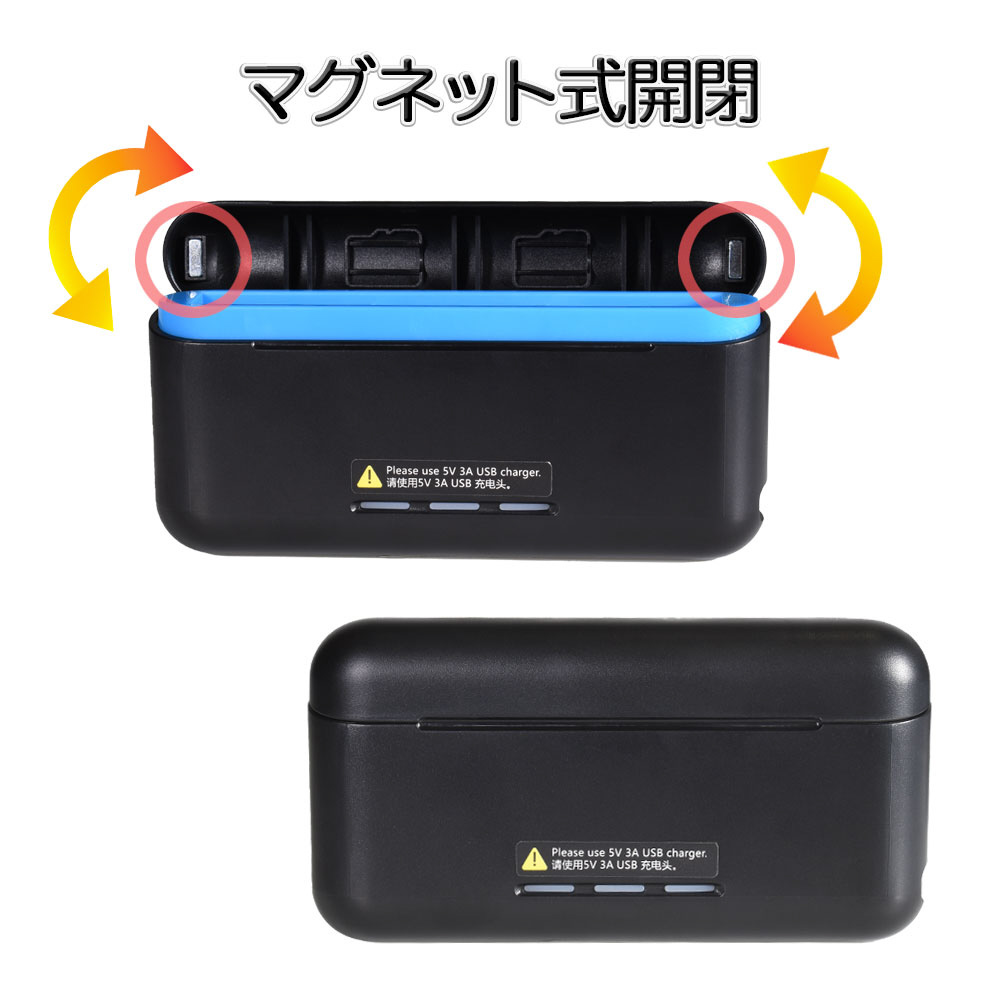フタ部分にはmicroSDカード2枚を収納できるスロット付き。バッテリーとまとめて管理でき、持ち運びにも便利です。