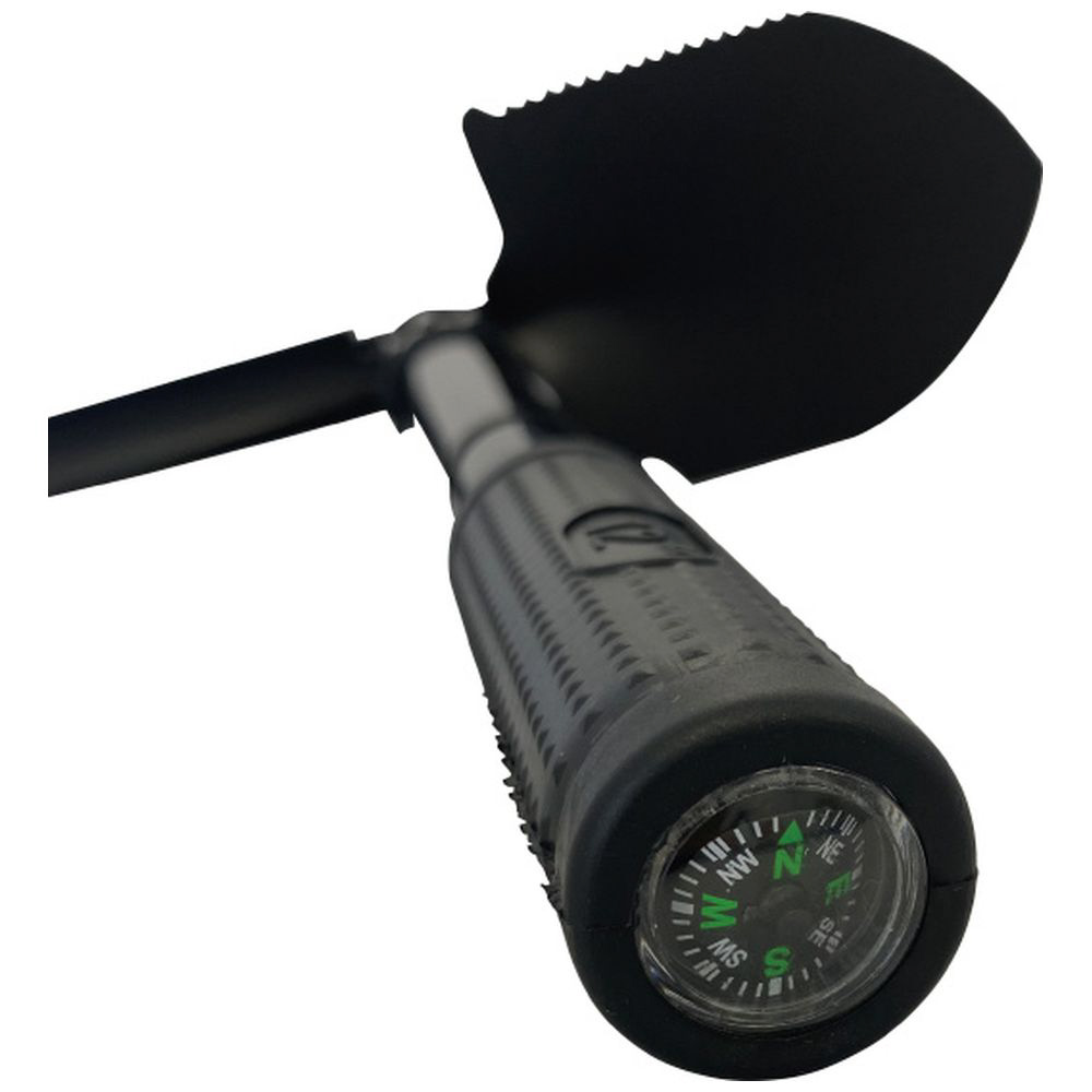 分割してコンパクトに収納できるスチールスコップです。ストレートとベントの2通りで使えます。マルチユースで、コンパス、ピックになります。ハンドルは握りやすいPPグリップです。ベルトループのあるポーチ付きです。アウトドア、キャンプ、ガーデニング、釣り、防災スコップにオススメです。