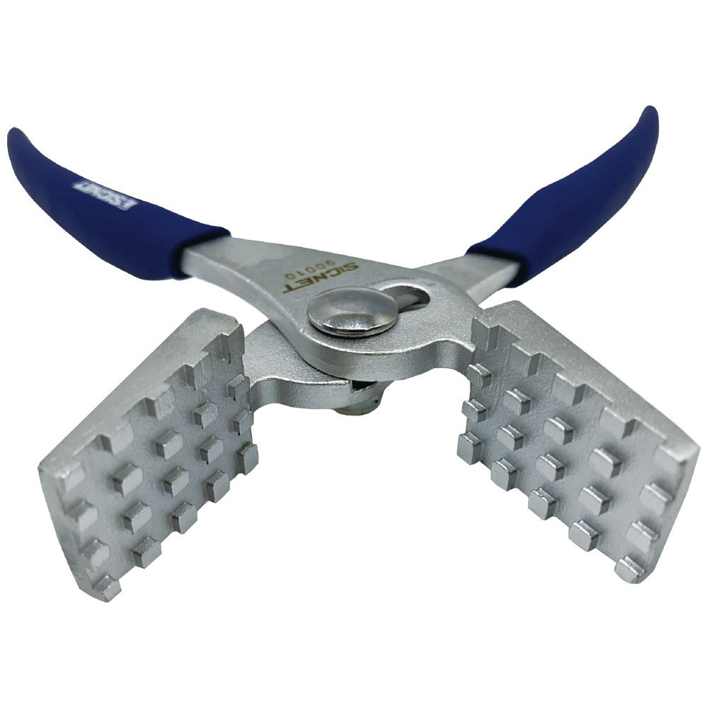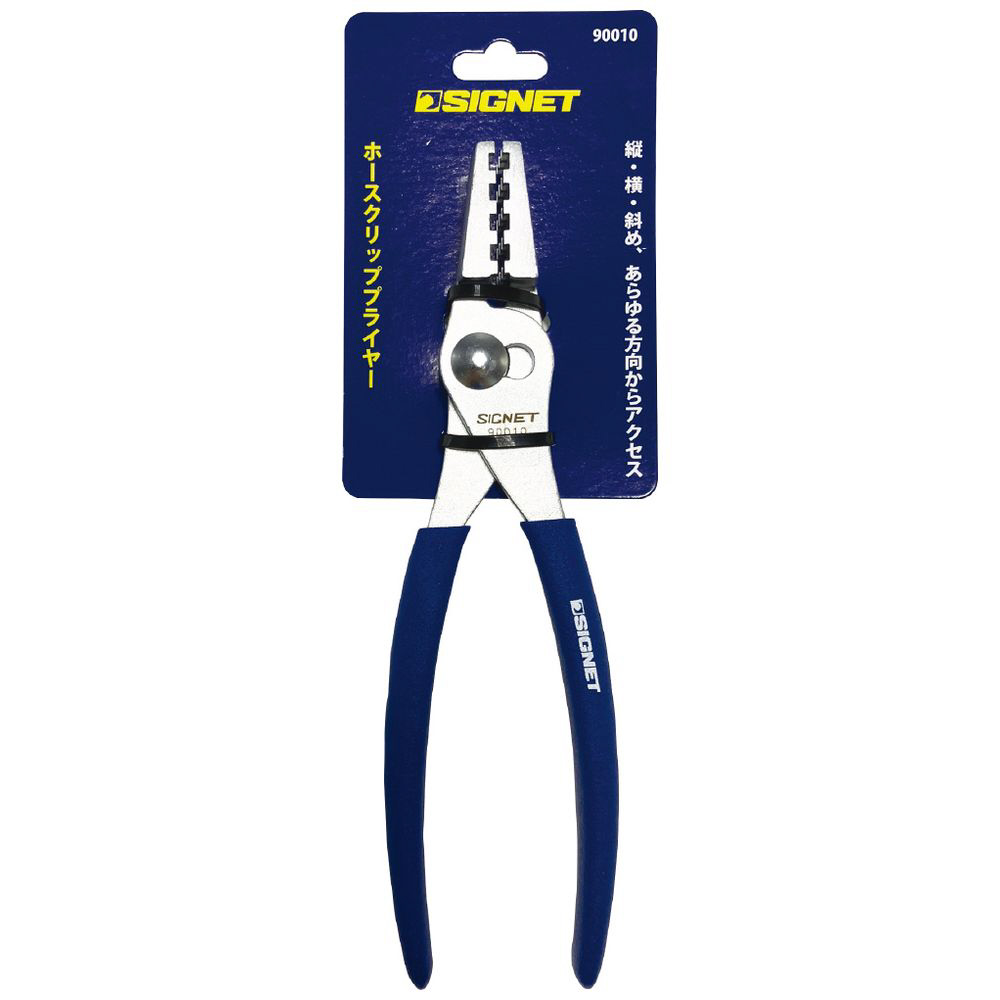 先端がブロック形状で滑りにくく、ホースクリップをがっちり保持します。歯部は台形状であり、縦・横・斜めのどの方向でも利用できます。狭い所や奥まった所でも使用できます。