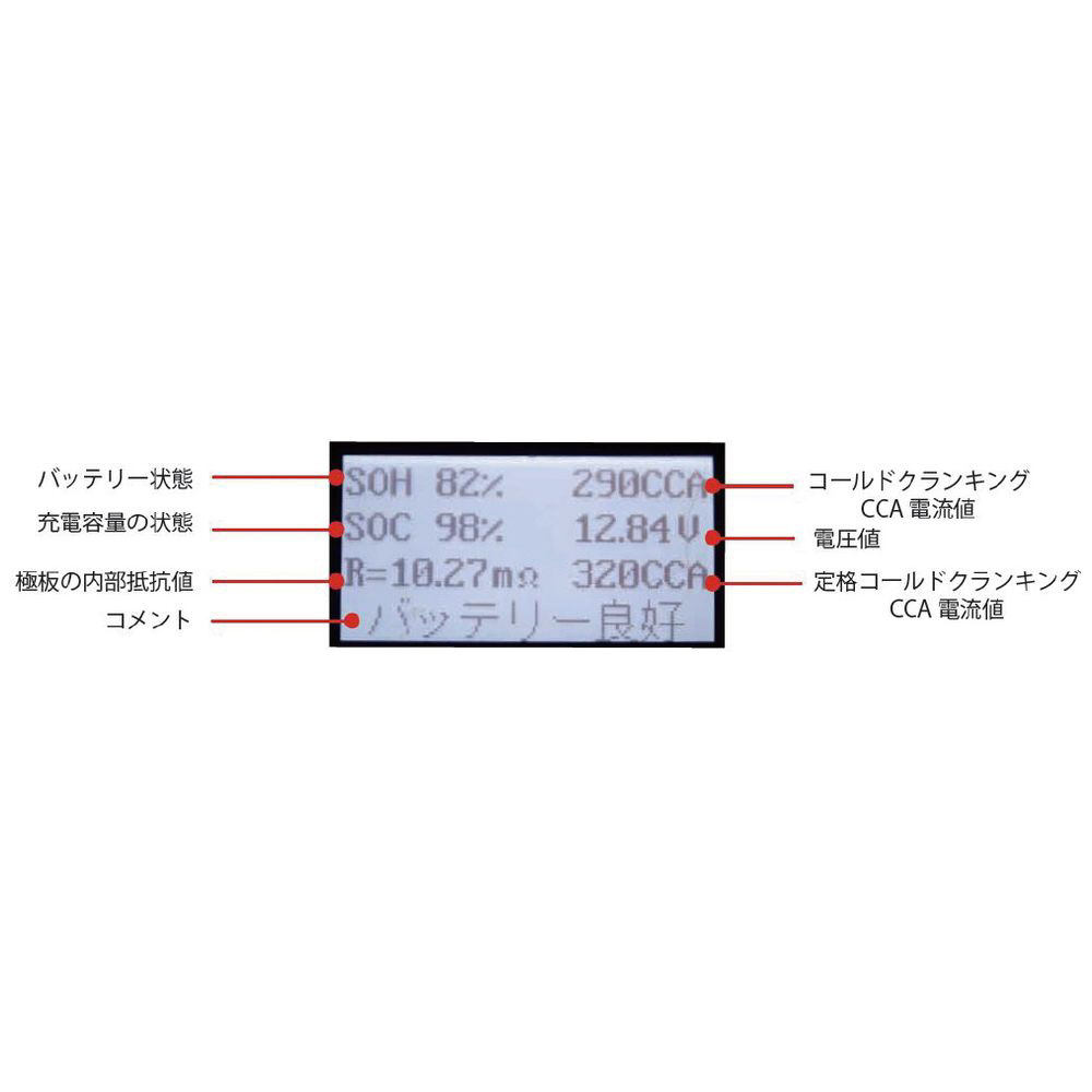 ・測定規格: CCA、BCI、CA、MCA、JIS、DIN、IEC、EN、SAE、GB