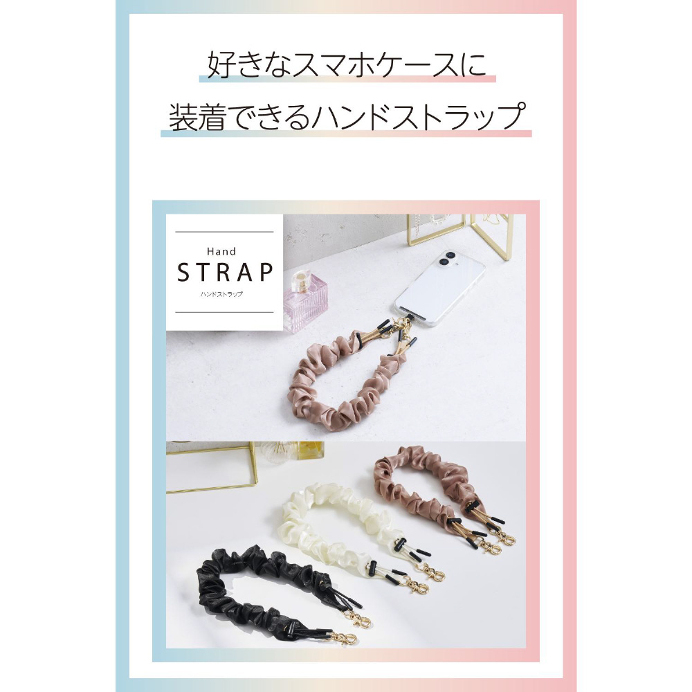 スマホストラップ シュシュ風デザイン ハンドストラップ 手首 落下防止 軽量 長さ調整可 ストラップホルダーシート付き iPhone/Android対応 携帯ストラップ