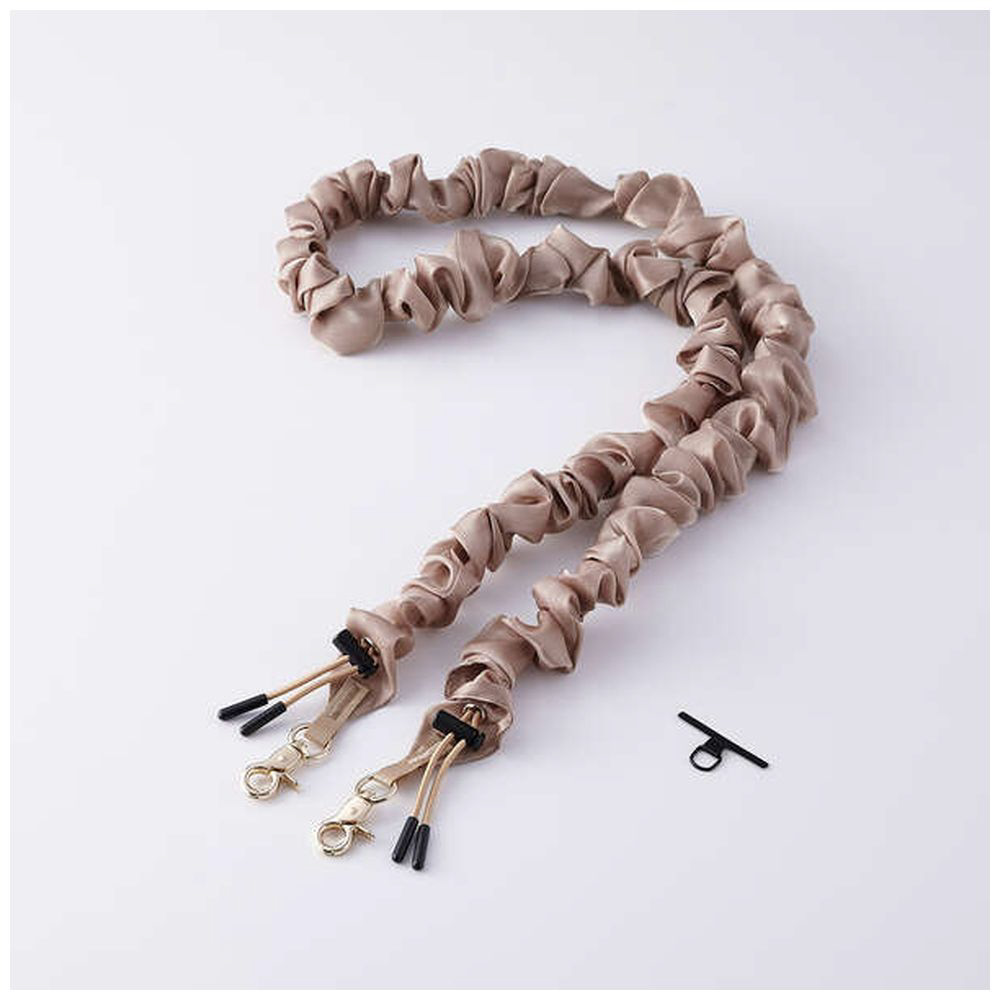 くしゅくしゅとした立体感と透け感のある生地が、大人の抜け感を演出するスマホショルダーストラップです。両手が空いて、普段のお出かけはもちろん、お仕事や旅行などのイベント時にも活躍。落下、盗難、紛失防止にもなります。軽量なポリエステル素材で肩にやさしく、長さ調整も可能なため自分らしいスタイルで使えます。