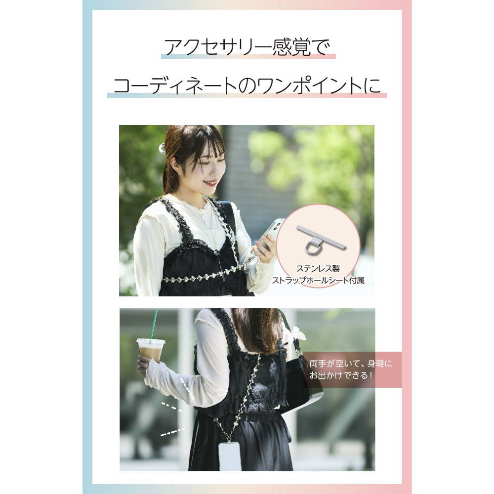 スマホストラップ ハートビーズ ショルダー 首掛け ストラップホルダーシート付 iPhone/Android対応 おしゃれ 落下防止