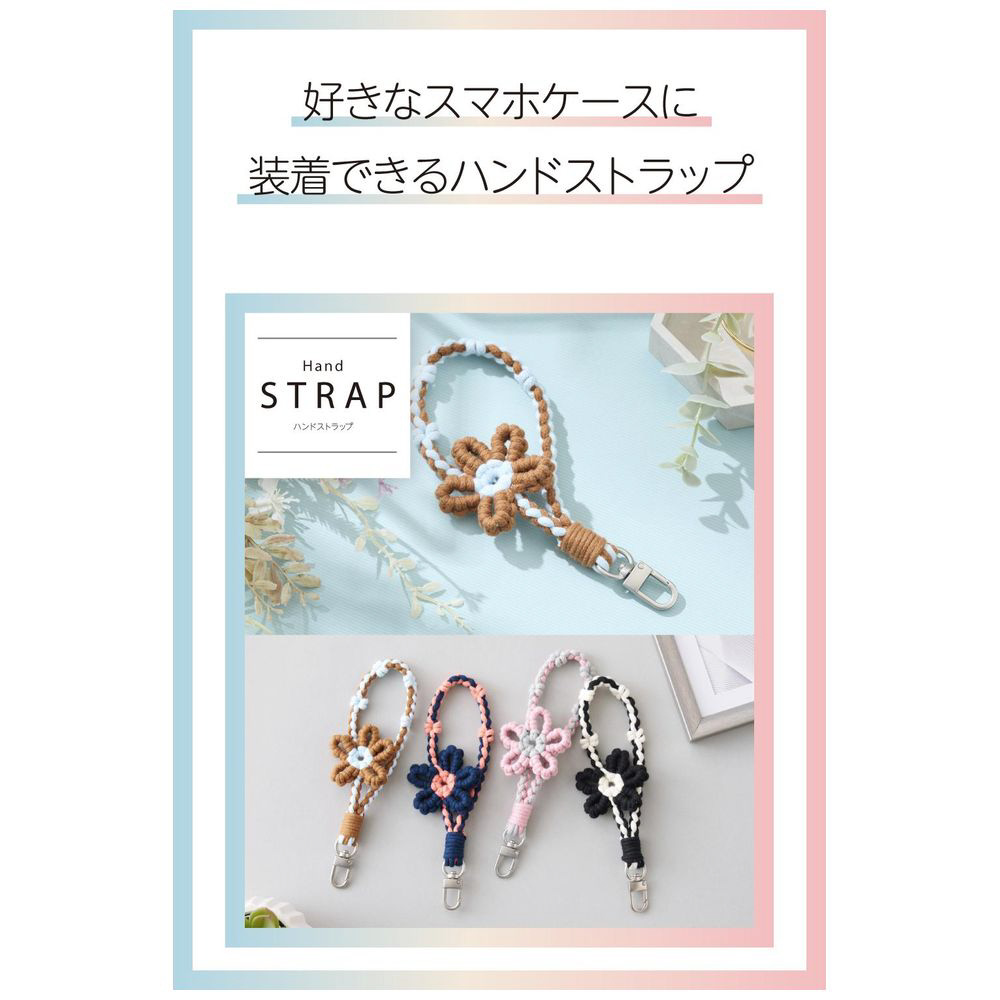 スマホストラップ フラワーモチーフ ハンドストラップ 手首 落下防止 軽量 ストラップホルダーシート付き iPhone/Android対応 携帯ストラップ