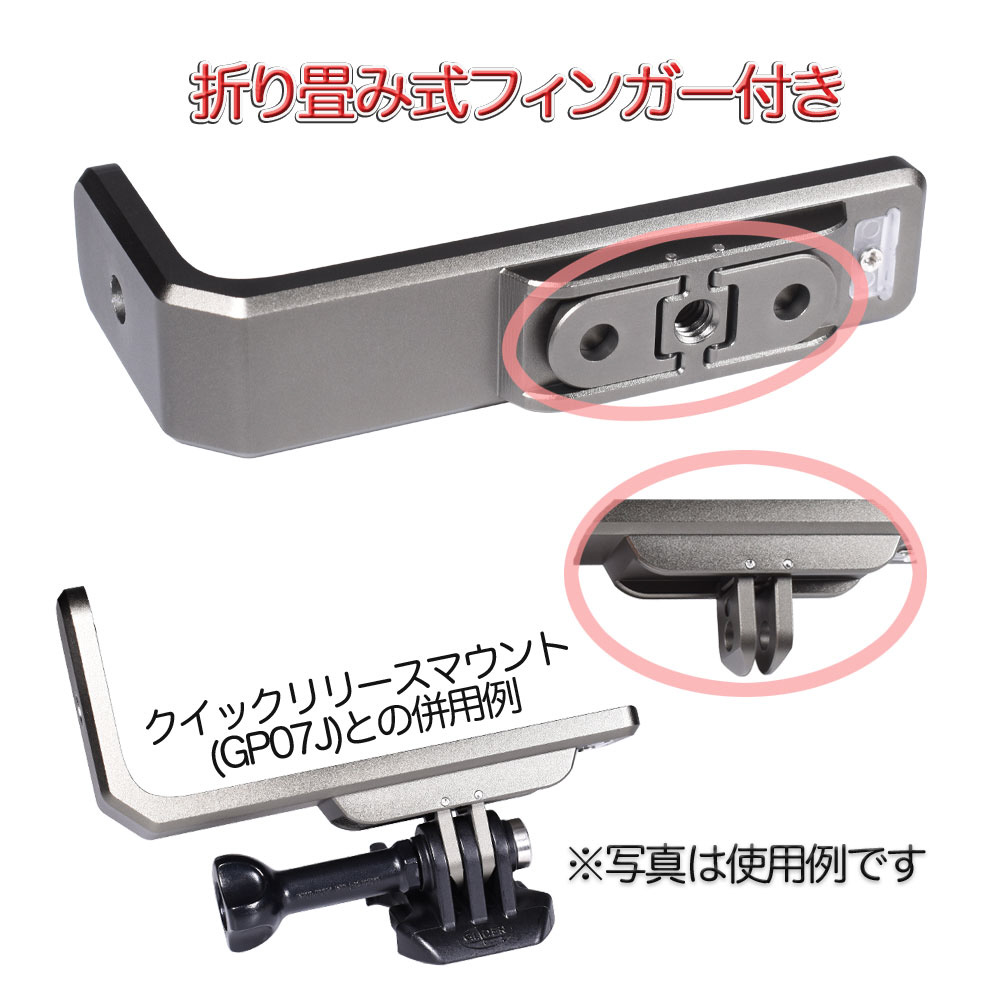 フレーム側面には三脚ネジ穴付きの折りたたみ式フィンガーを装備。GoPro用マウント式自撮り棒など、幅広いアクセサリーとの組み合わせに対応します。
