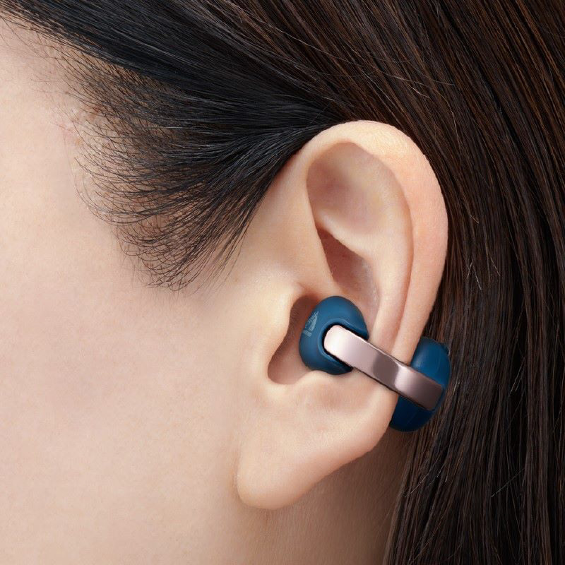 ■アクセサリー感覚で身に着けられるイヤーカフ型、着脱しやすく軽く快適な着け心地を実現する当社独自の「フレキシブルアジャスト」機構