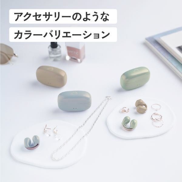 ■アクセサリー感覚で身に着けられるイヤーカフ型、着脱しやすく軽く快適な着け心地を実現する当社独自の「フレキシブルアジャスト」機構