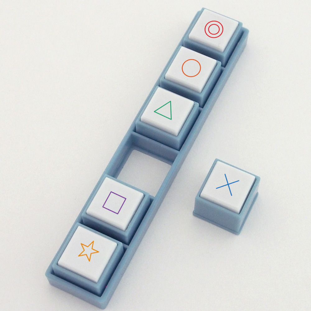 スタンプは1個ずつ枠から外して押したり、位置や向きを変えて枠にもどすこともできます。