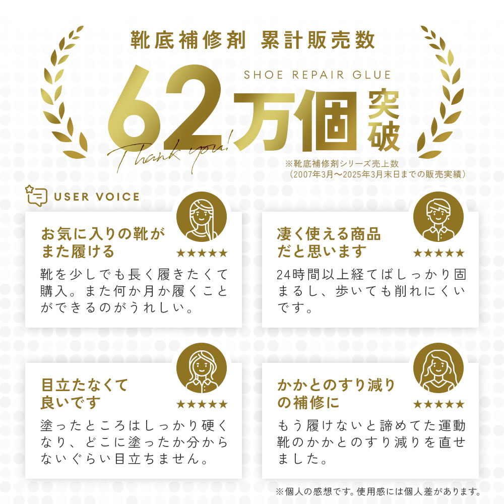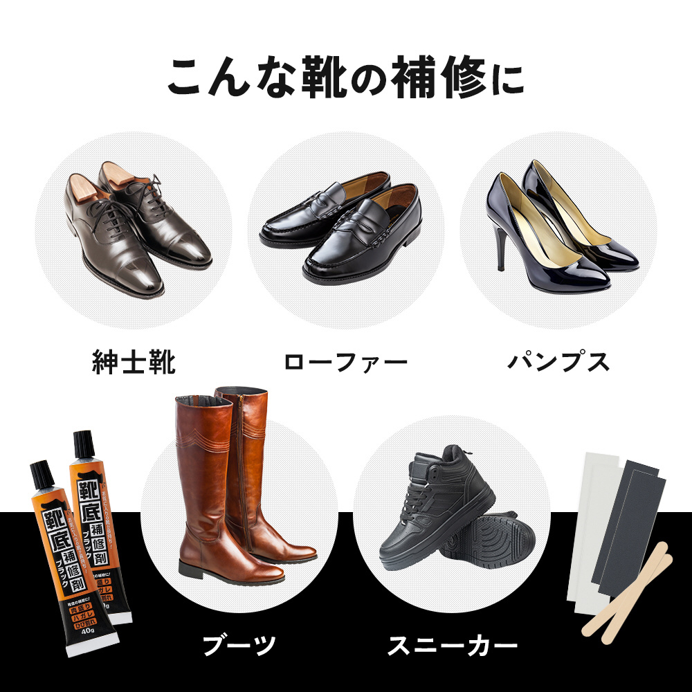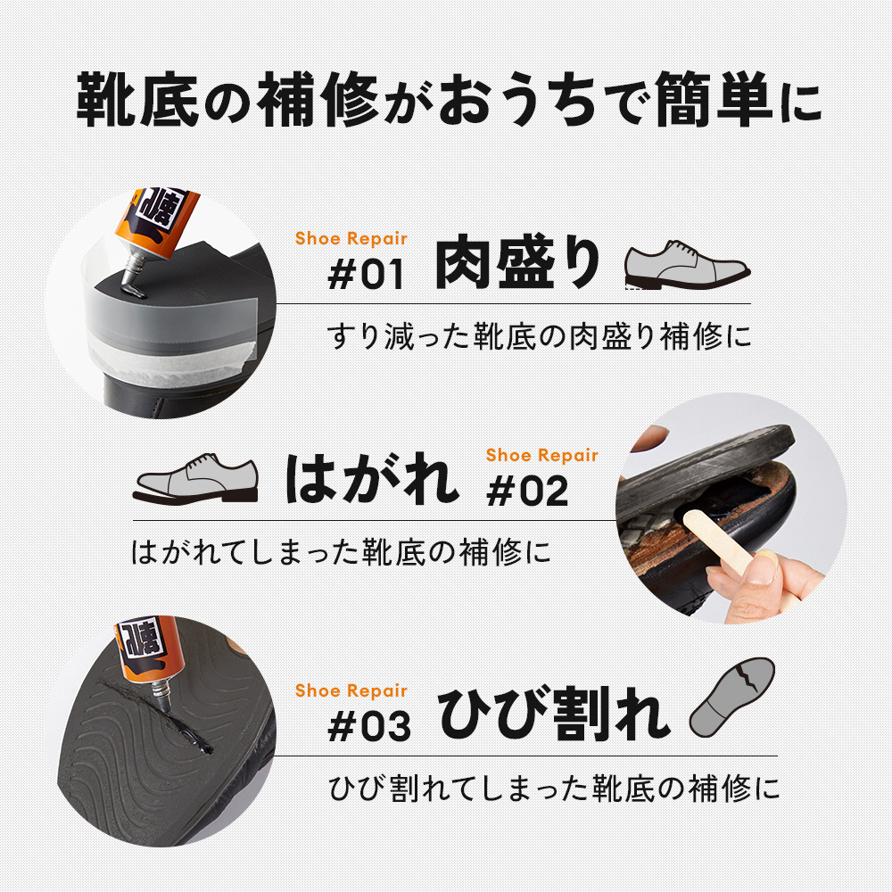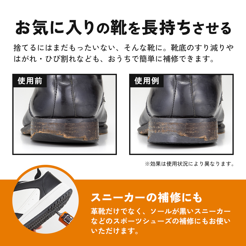 靴のすり減りやはがれを自宅で簡単補修できる靴底補修剤です。