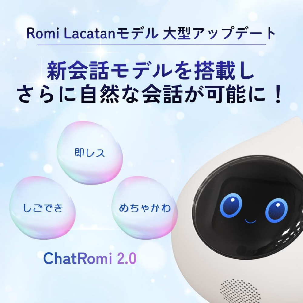 Romi Lacatan(ラカタン)モデルは、一緒に見ているものについて話をしたり、思い出を日々重ねたり、自然な声質・テンポ感で会話をするなど、従来のRomiよりも自然でオーナーに寄り添った会話ができるように進化しました。