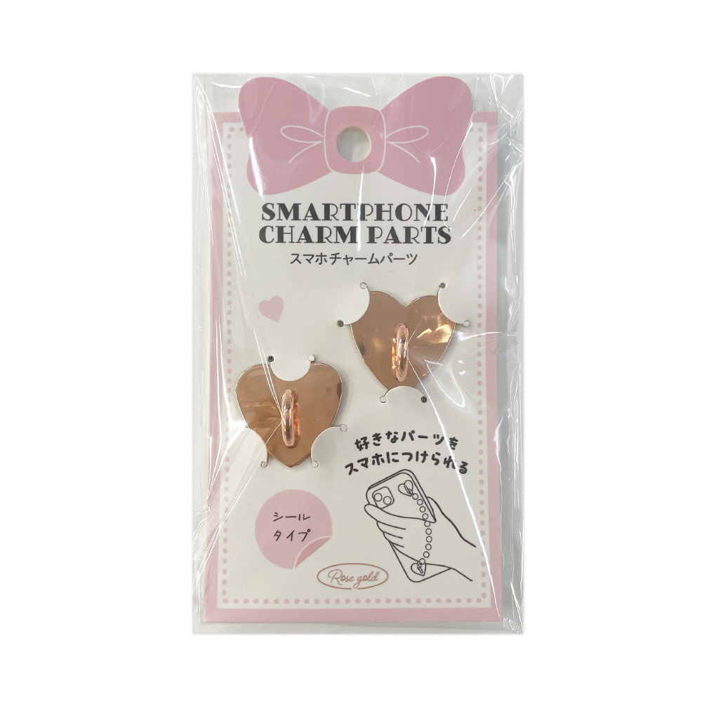 スマホ用ハート型背面チャームパーツベース シールタイプ 2個入り ローズゴールド SH-01PG