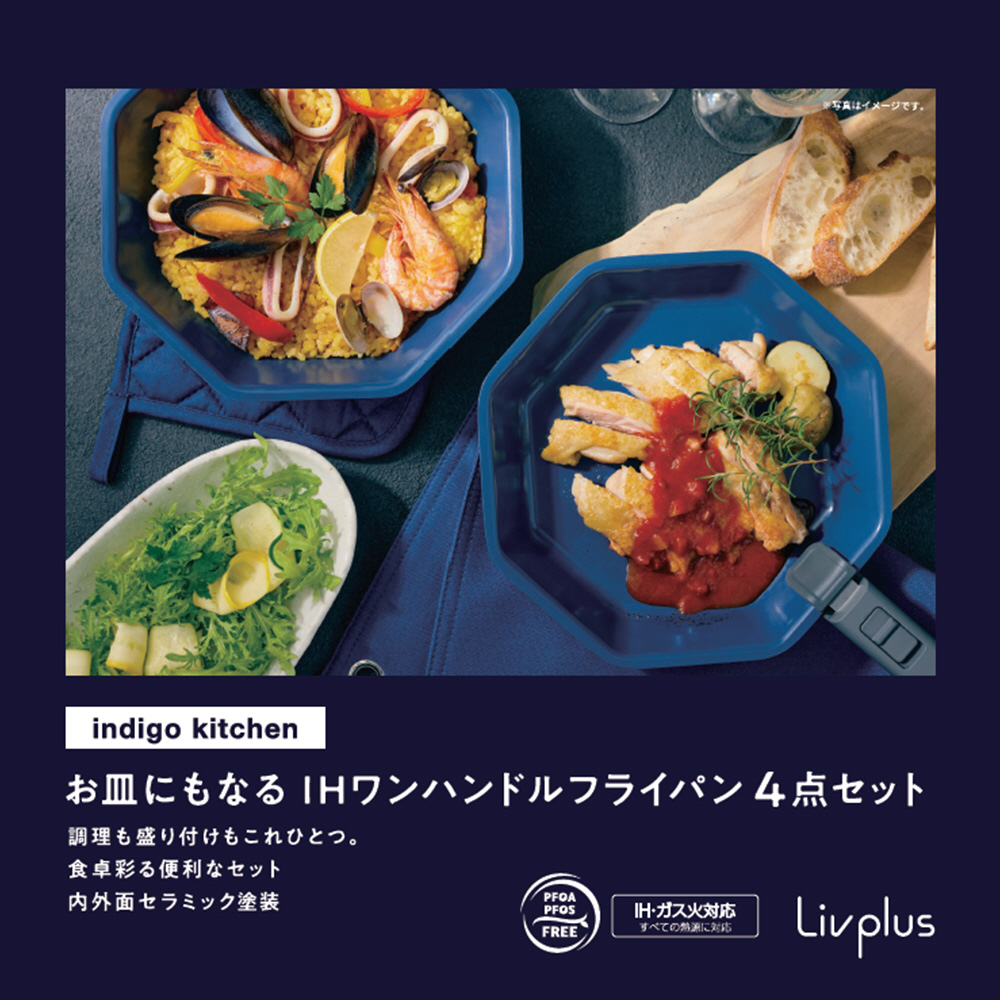 お皿にもなる便利なフライパン4点セット。
