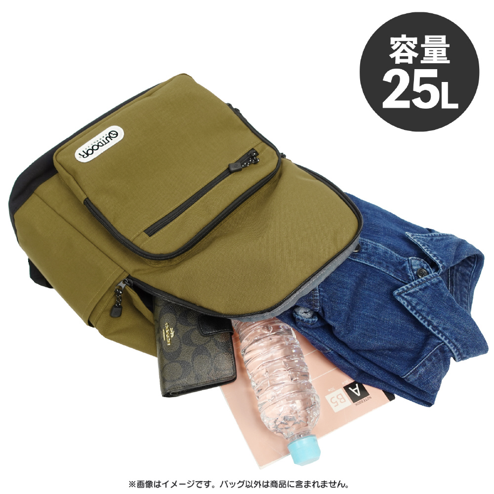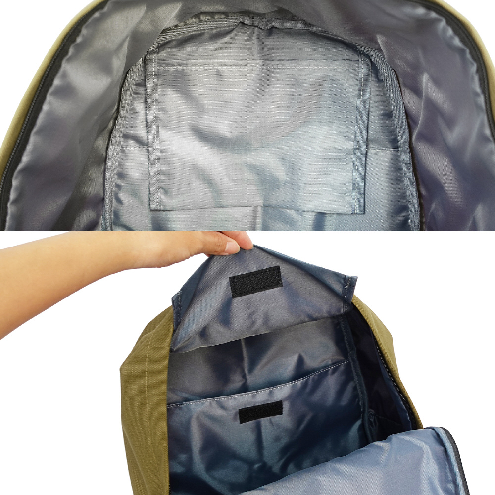 25Lのメインルームには、吊りポケットに加え、A4サイズのノートなどを分けて収納できる大型ポケットを設けています。