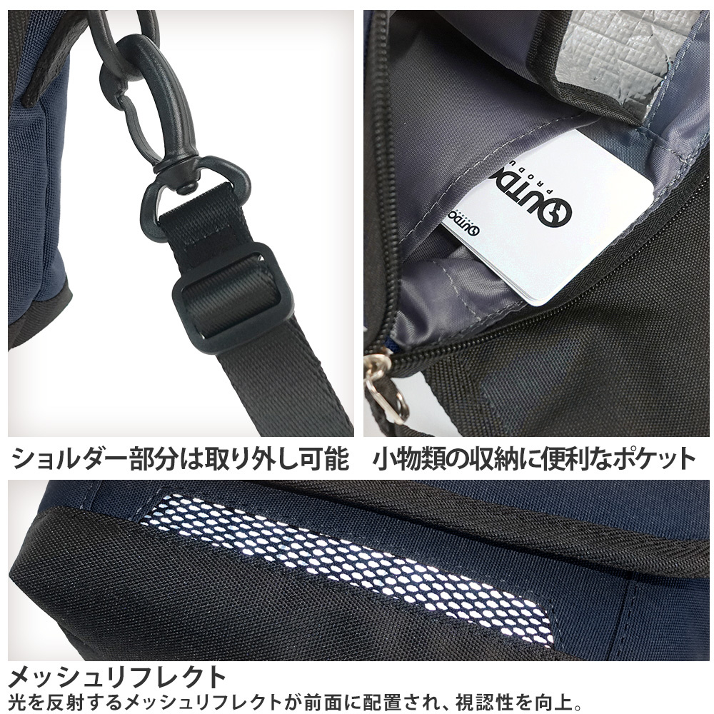 本体には高密度な450Dポリエステル素材を使用し、軽量ながらも耐久性に優れた仕上がりです。