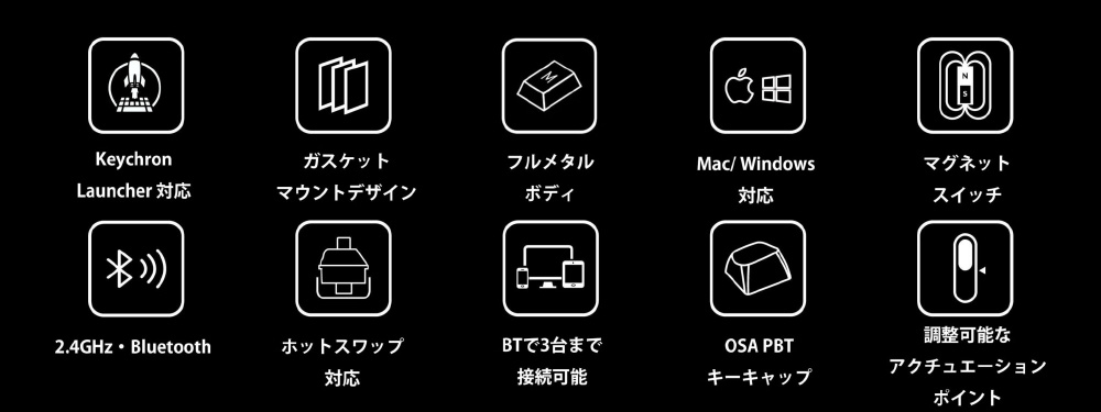 ダブルレール構造と特別なプレルーブ加工により、これまでにない圧倒的な安定性とスムーズな打鍵感を実現します。わずか0.1mmの感度を持つ最適な磁気センサーを搭載し、より貴重なフィードバックを提供します。アクチュエーションポイントをカスタマイズし、パーソナライズされた移動深度に基づいて1つのキーに複数のアクションを割り当てることで、ゲームプレイを向上させ、カスタマイズされたタイピング感覚を提供します。