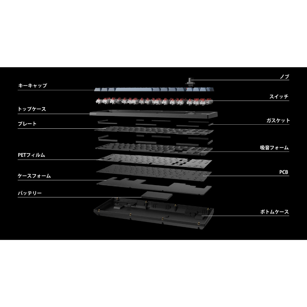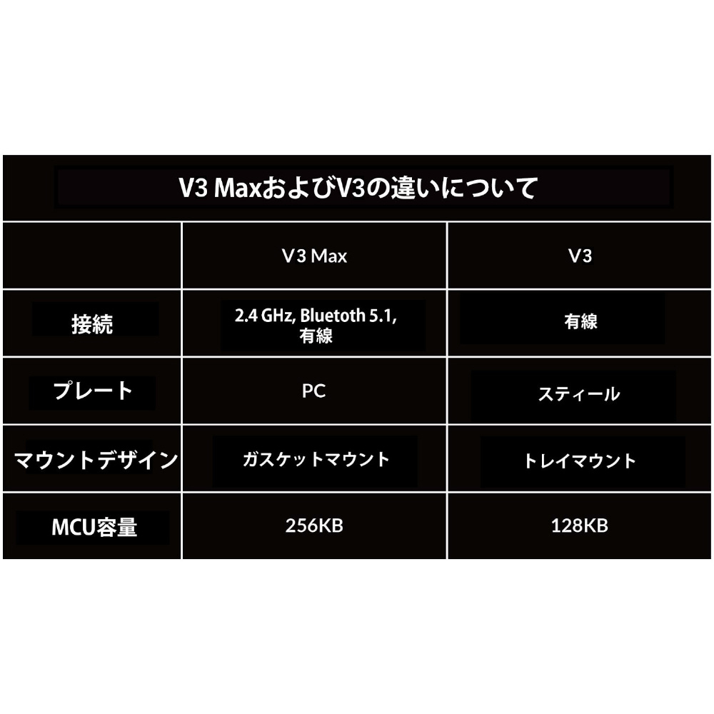 PC(ポリカーボネート)プレートとともにガスケットマウントデザインを採用することで、V3 Maxは音響共振を低減し、よりソフトで静かなタイピングエクスペリエンスと柔軟性の向上を実現しています。