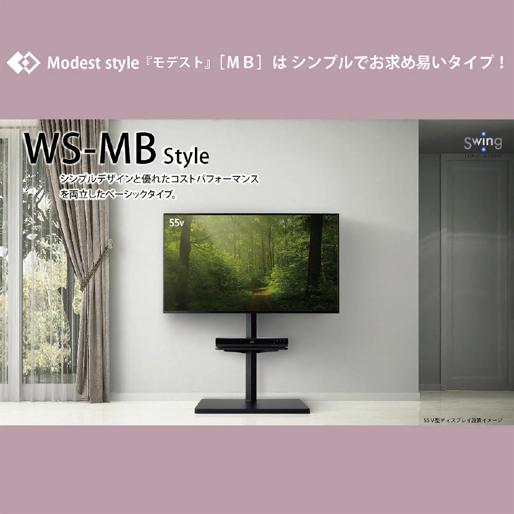 壁寄せテレビスタンド 32〜60V対応 ブラック WS-MB650-BK