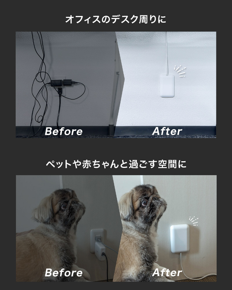 ご家庭はもちろん、オフィスや店舗などあらゆるシーンのコンセント周りをスッキリ美しく。