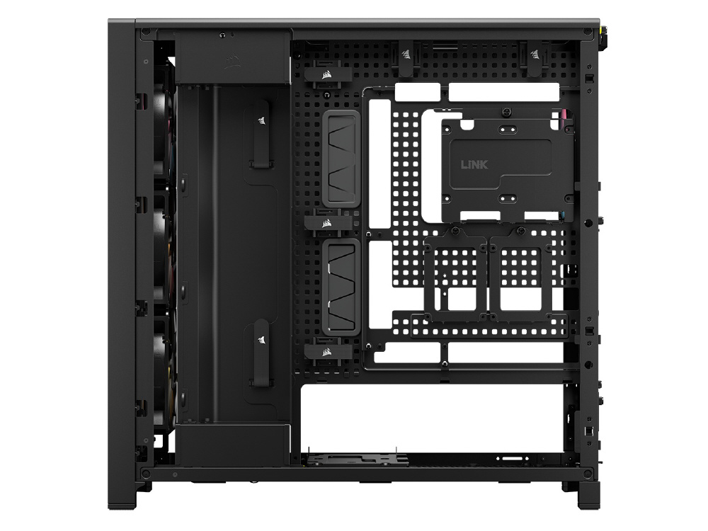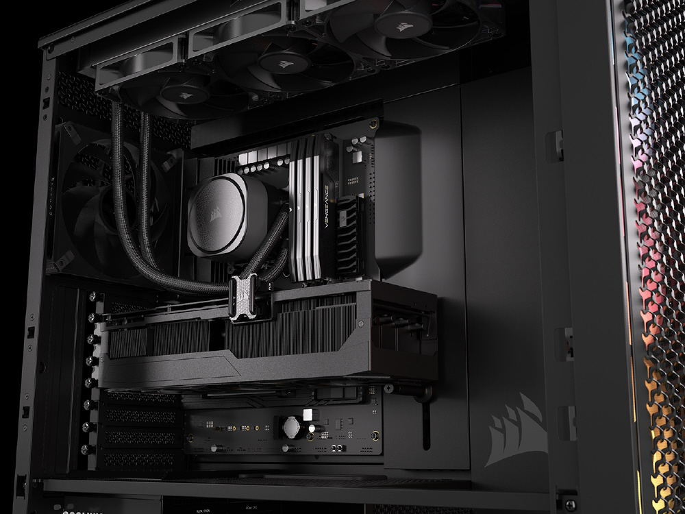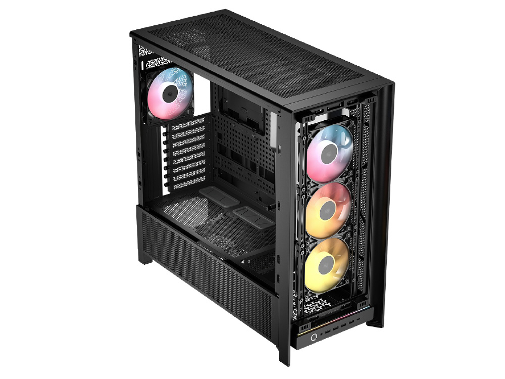 InfiniRailシステムにより柔軟なファンレイアウトを実現。RGBファンを備え、背面コネクタ設計のマザーボードに対応するミドルタワー型PCケース