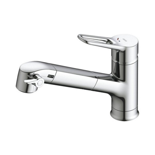 浄水器内蔵シングルレバー混合水栓で、浄水・微細シャワー・整流をレバーひとつで切替可能。