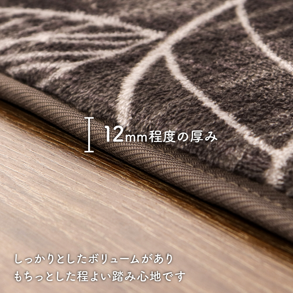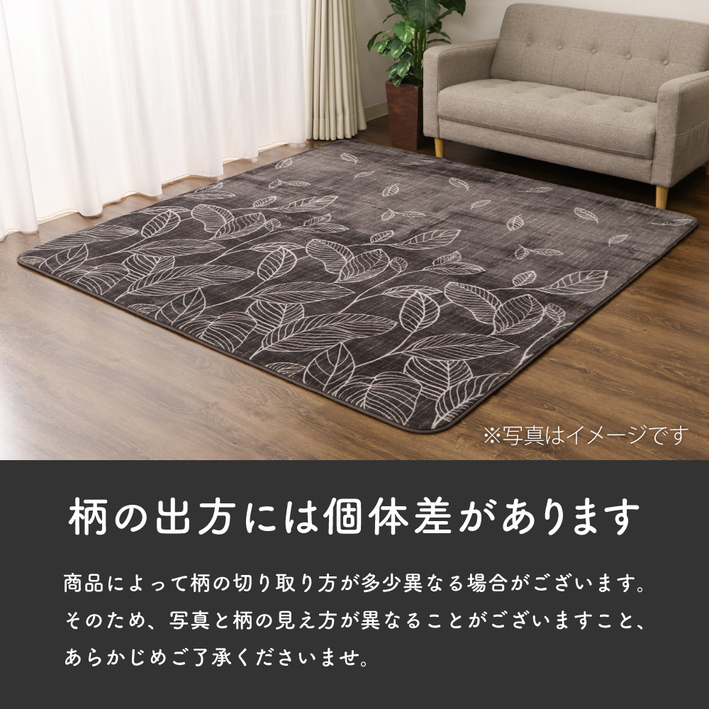 【ラグ】ボリュームフランネルセンターラグ リーフ 正方形サイズ(約185x185cm) グレー 963729/GY