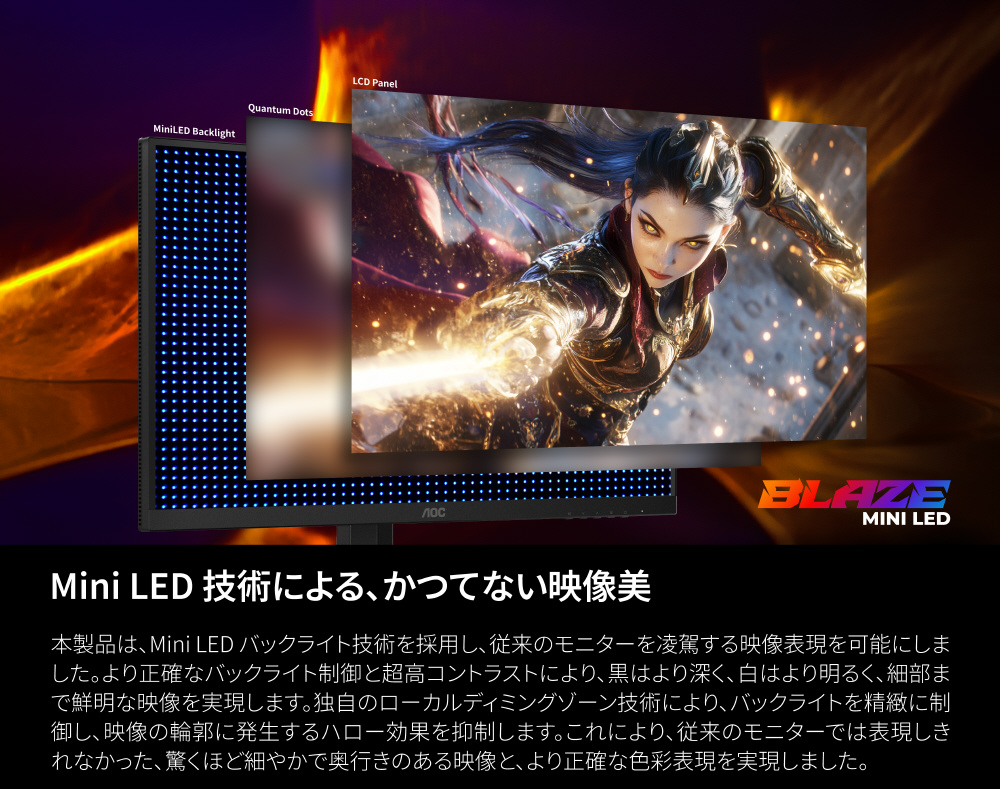 ■最高傑作QDミニLEDゲーミングモニター&リフレッシュレート4K/160HzとFHD/320Hzの切替対応&最大応答速度1ms