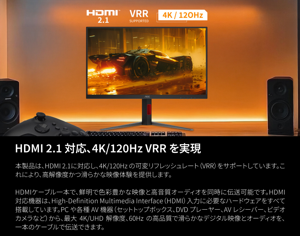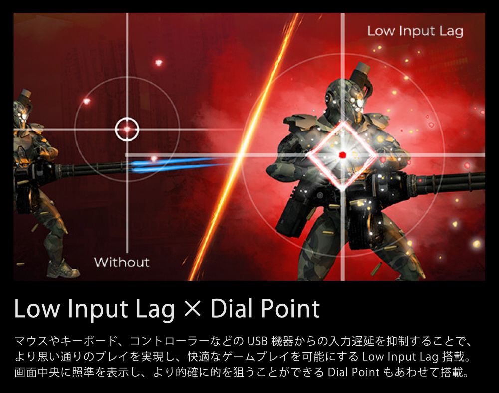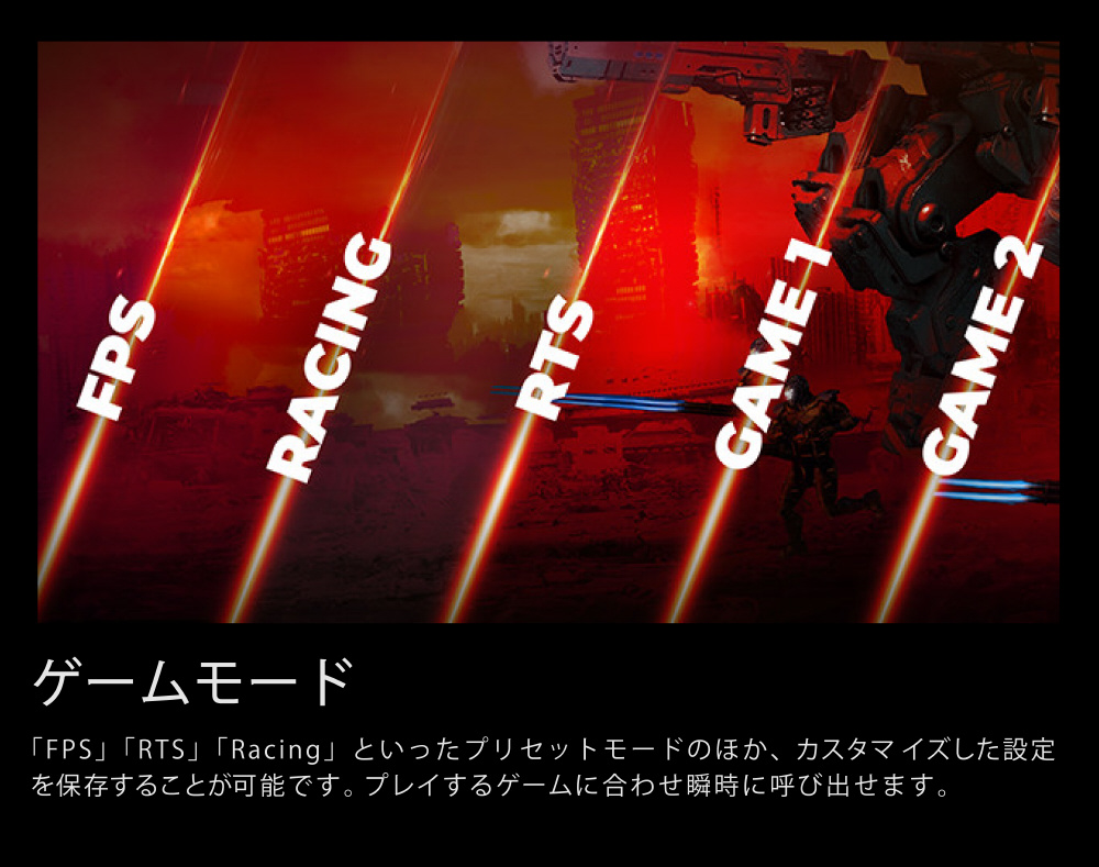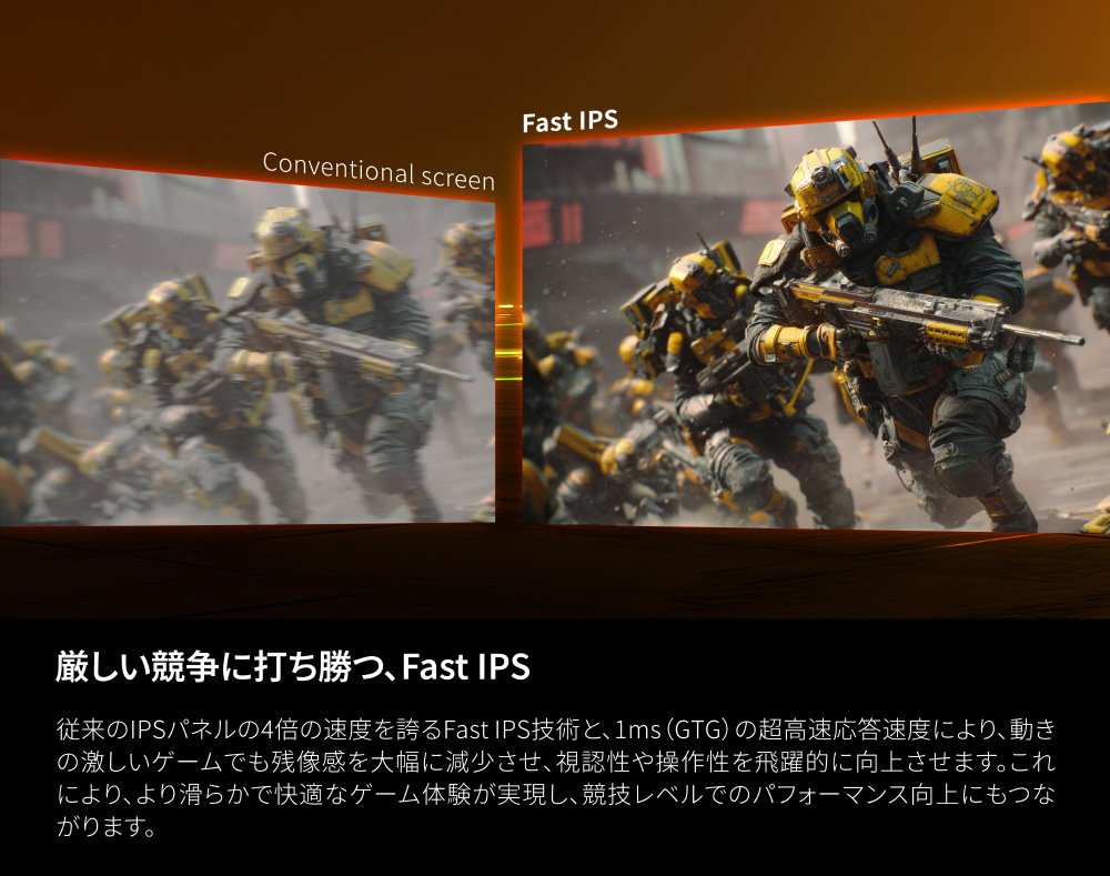 4K/160HzとFHD/320Hzの切替対応。応答速度にも優れ、eスポーツで求められる滑らかさと正確さを提供します。