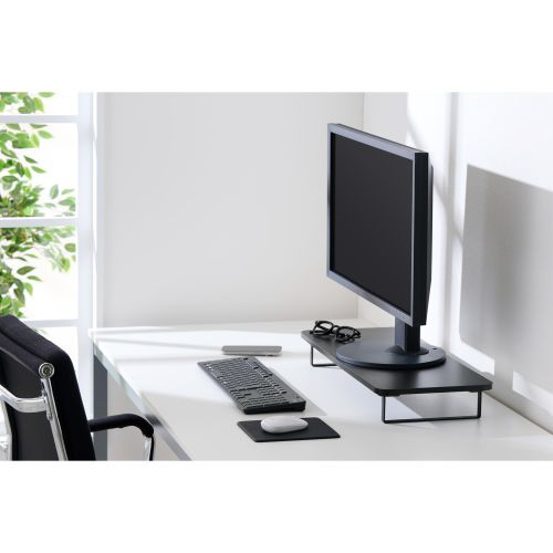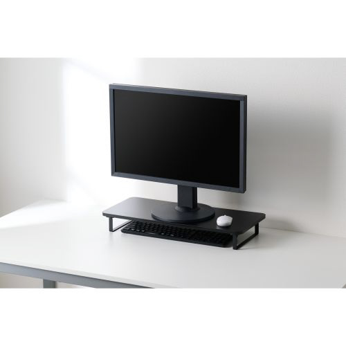 モニターの高さを上げ、目線を上げることでパソコン作業時の姿勢を改善するモニタースタンドです。スタンドの下にキーボードを置くなどスペースを有効活用できるので、デスクを広く使えます。