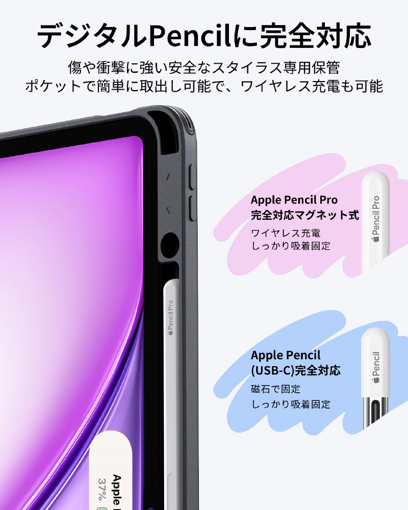 ご注意:iPad Pro 12.9インチと他のiPadモデルには非対応です。