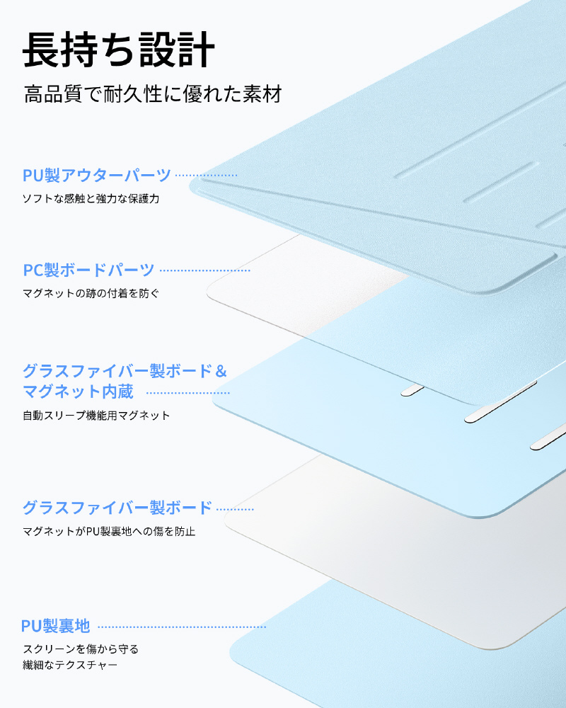 スリムボディと羽毛のような軽さが特徴。通勤や旅行はもちろん、お子様の勉強時にも最適。教材と一緒に鞄に入れてもかさばらず、片手で簡単に持ち運べます。耐衝撃設計で落下からデバイスを保護。親子で使いやすいスマートな学習パートナーです
