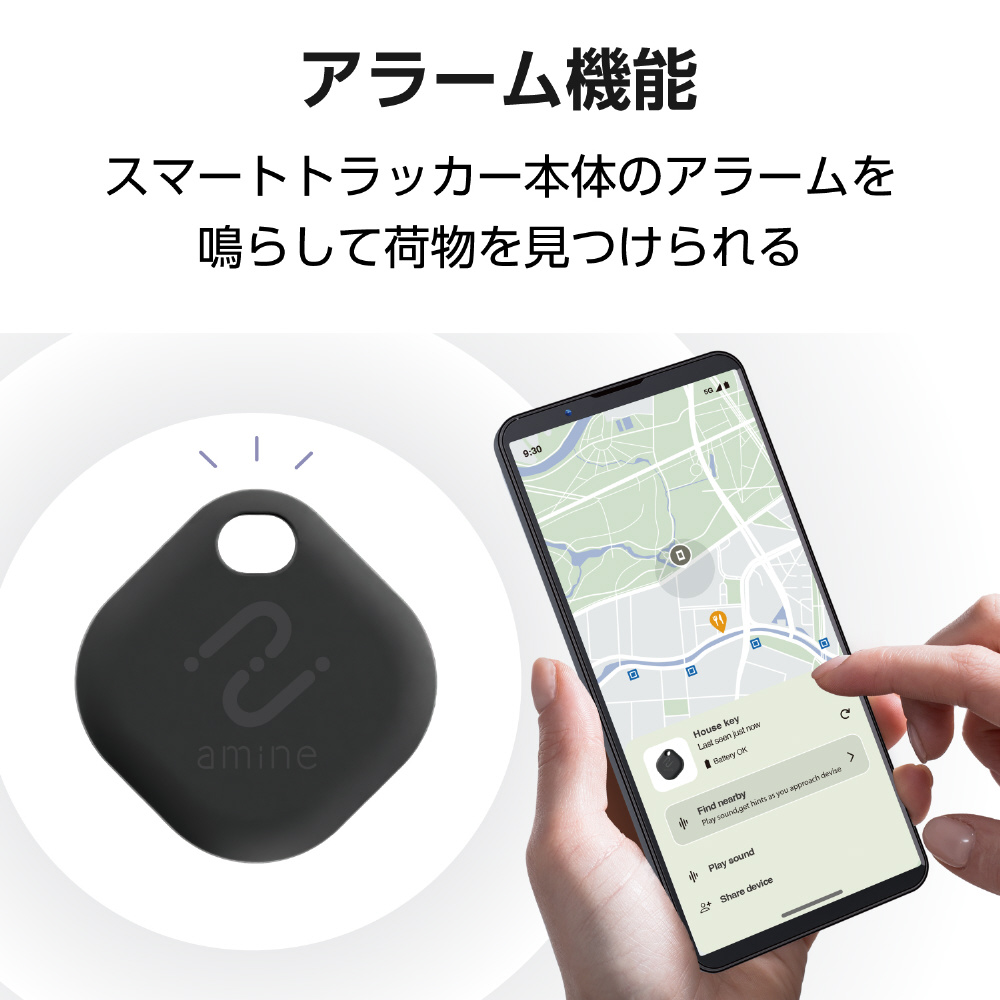 Android(TM)の「Find Hub」アプリから位置を確認!鍵や財布、かばんなど大切な荷物に付けて位置情報を追跡できるamine(あみね)シリーズの忘れ物防止タグです。激しい雨に濡れても安心の防水・防塵等級IP65だから、多彩なシーンで活躍。重さはたったの8.2gだからキーホルダー感覚で付けられます。いろいろな場所に付けられる、安心の4個セットです。