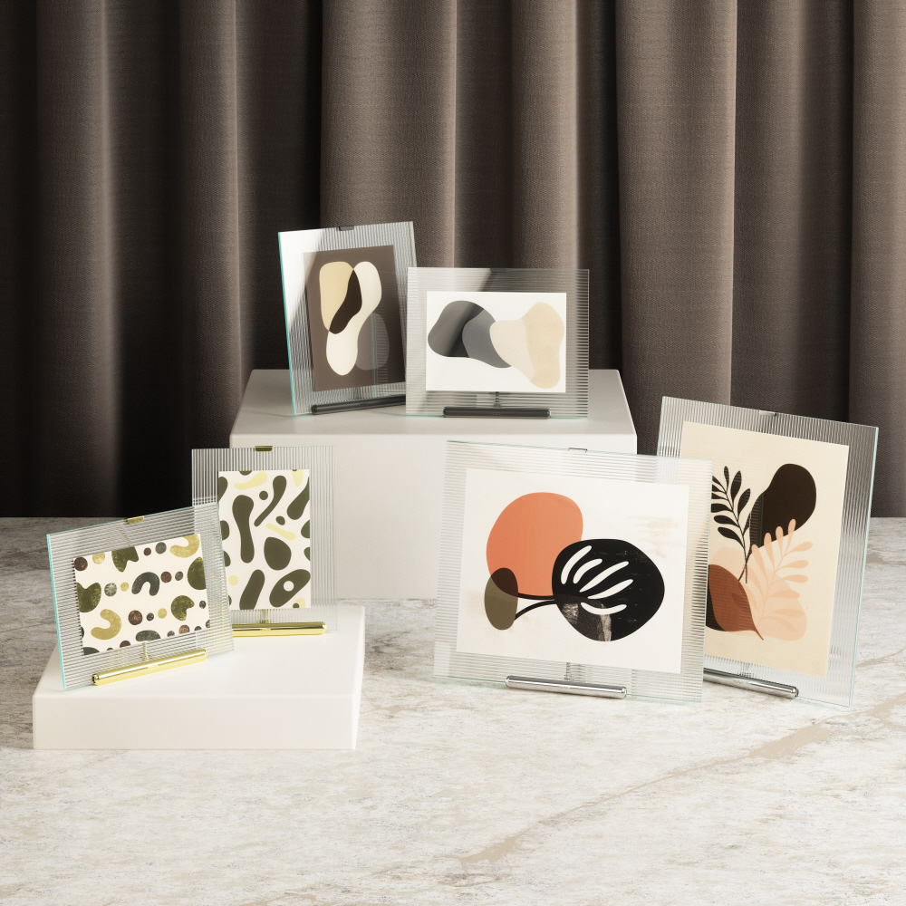 縦に溝の模様が入った分厚い2枚のガラスが特徴のフルート フォトフレーム。
