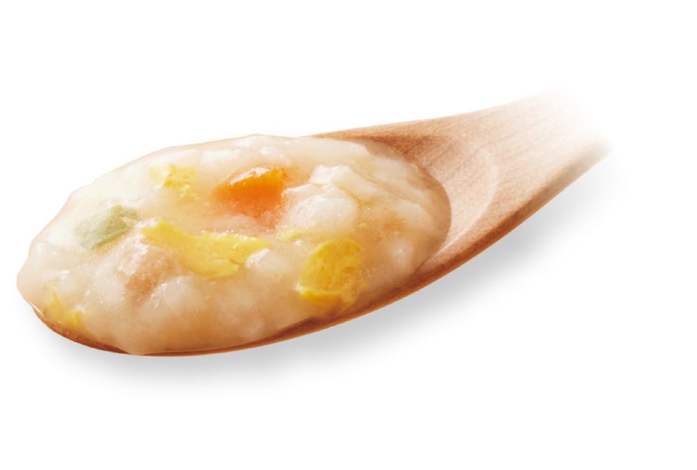 ■一般的なおかゆの約1.5倍※のエネルギー110Kcalがとれる仕立てになっています。(※「日本食標準成分表2015年版(七訂)穀類/こめ/[水稲全かゆ]/精白米」対比)