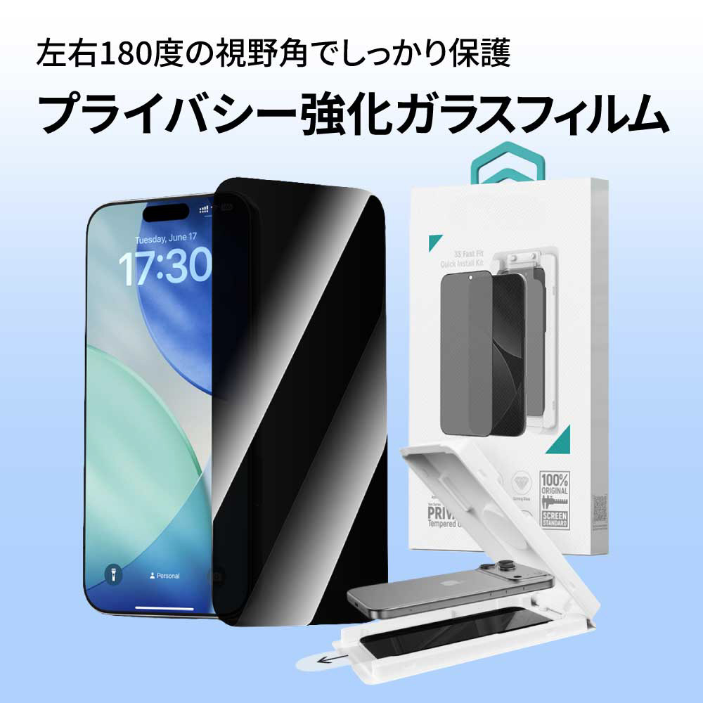 iPhone 17フィルム Van Series Full Screen Privacy Tempered Glass(With Assist Tool) DEVIA ブラック BLDVGL02-17-PR