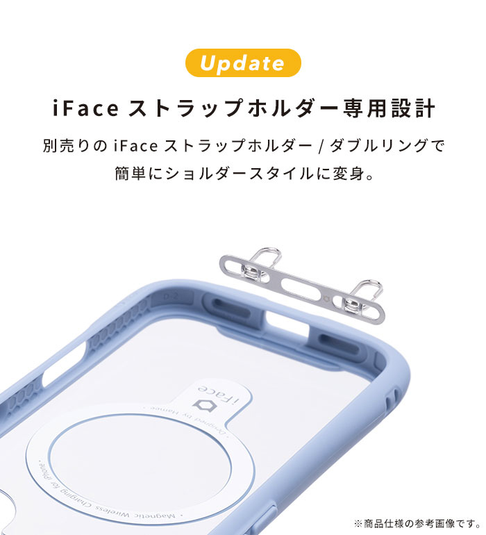 ※ストラップホルダーを併用する場合は、iFaceから発売している公式製品をご使用ください。類似品ではiFaceケースと併用の使用感を保証しかねるため、ご注意ください。