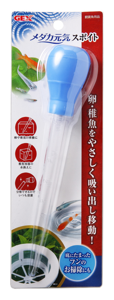 容器の底に落ちた卵や小さな稚魚を水と一緒にやさしく吸い出します。糞や食べ残しのお掃除にも。
